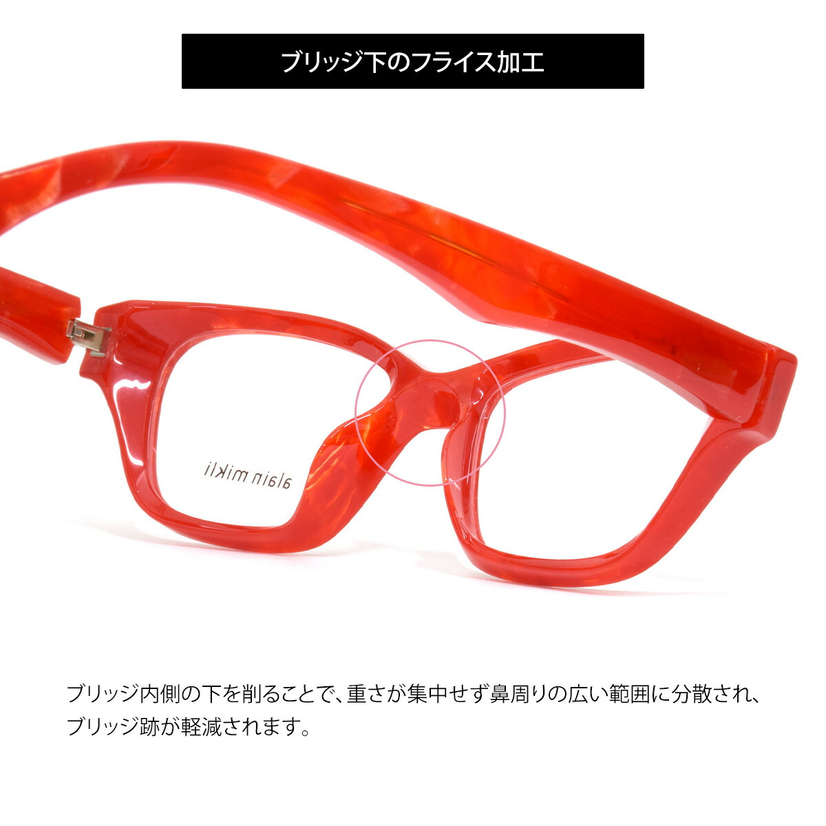 また、左右のテンプルで2mm〜5mmほど長さを変えて非対称(アシンメトリー)エンドピースにすることで、ピッタリとテンプルをたたむ事が出来るよう工夫されています。-新生alain mikli-1978年にフランスのデザイナーであるアラン・ミクリによって設立され「見るための、そして見られるためのメガネ」、「機能性と審美性」をコンセプトに、斬新でアートのようなデザインと高品質な素材を組み合わせたアイウェアを展開してきた、世界的に有名なメガネブランド“alain mikli”。