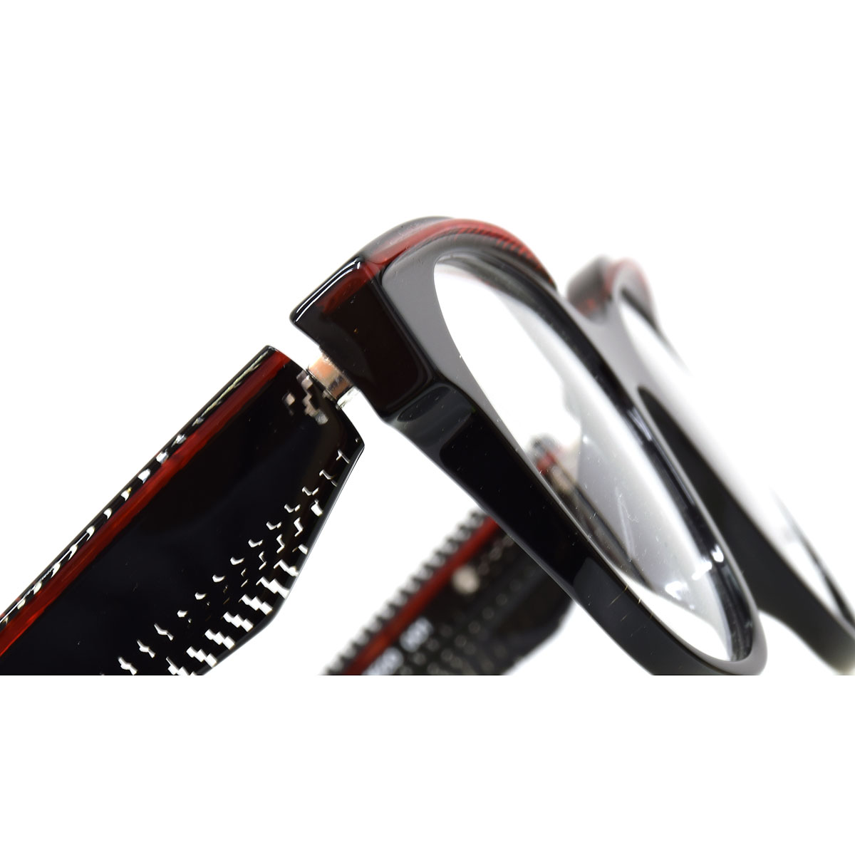 テンプル内側は、幅広の部分を大きく面取りすることで縦幅のボリュームを保ちながら重さを軽減し、掛け心地にもこだわって設計されています。