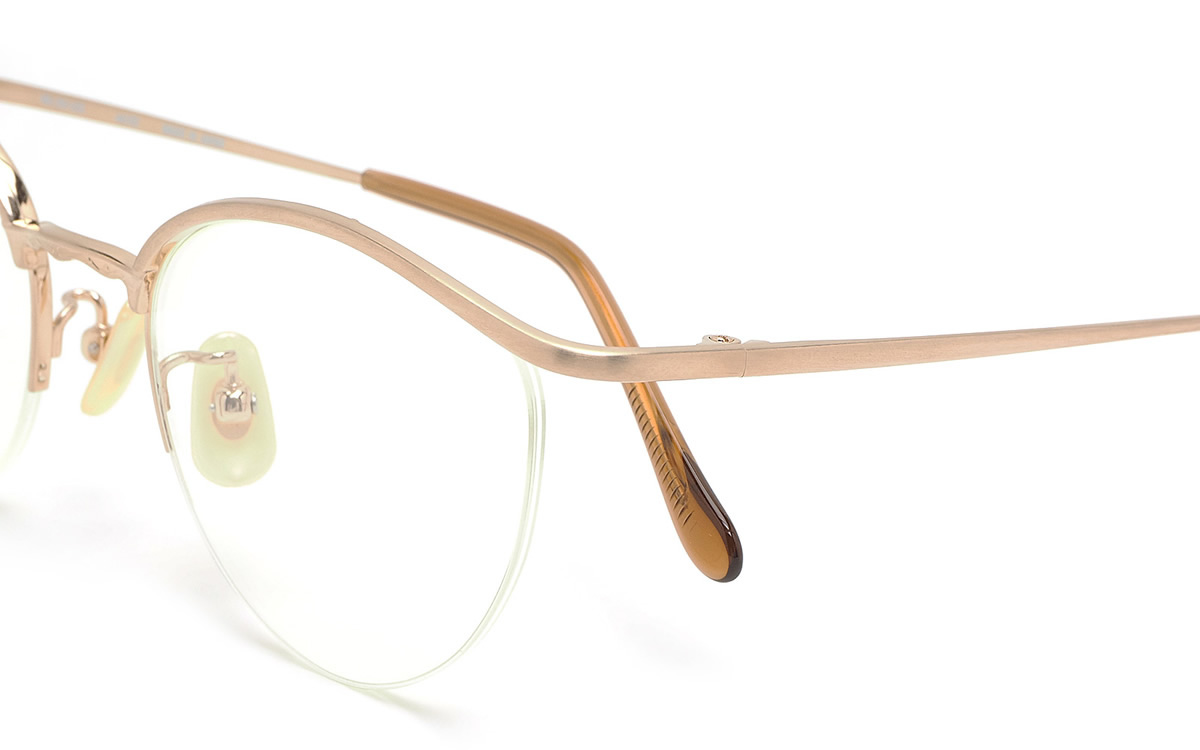 クラシカルな雰囲気とトレンドの境目にある「現代の感性」を表現したメガネフレーム。「ボストン+ナイロール+サーモントブロー」という組み合わせがとても斬新です。テンプルやリムがシンプルな分、ブリッジ部分の装飾が際立つところも印象的です。緻密な技術の光る、MADE IN JAPANならではのオススメのアイウェアです。