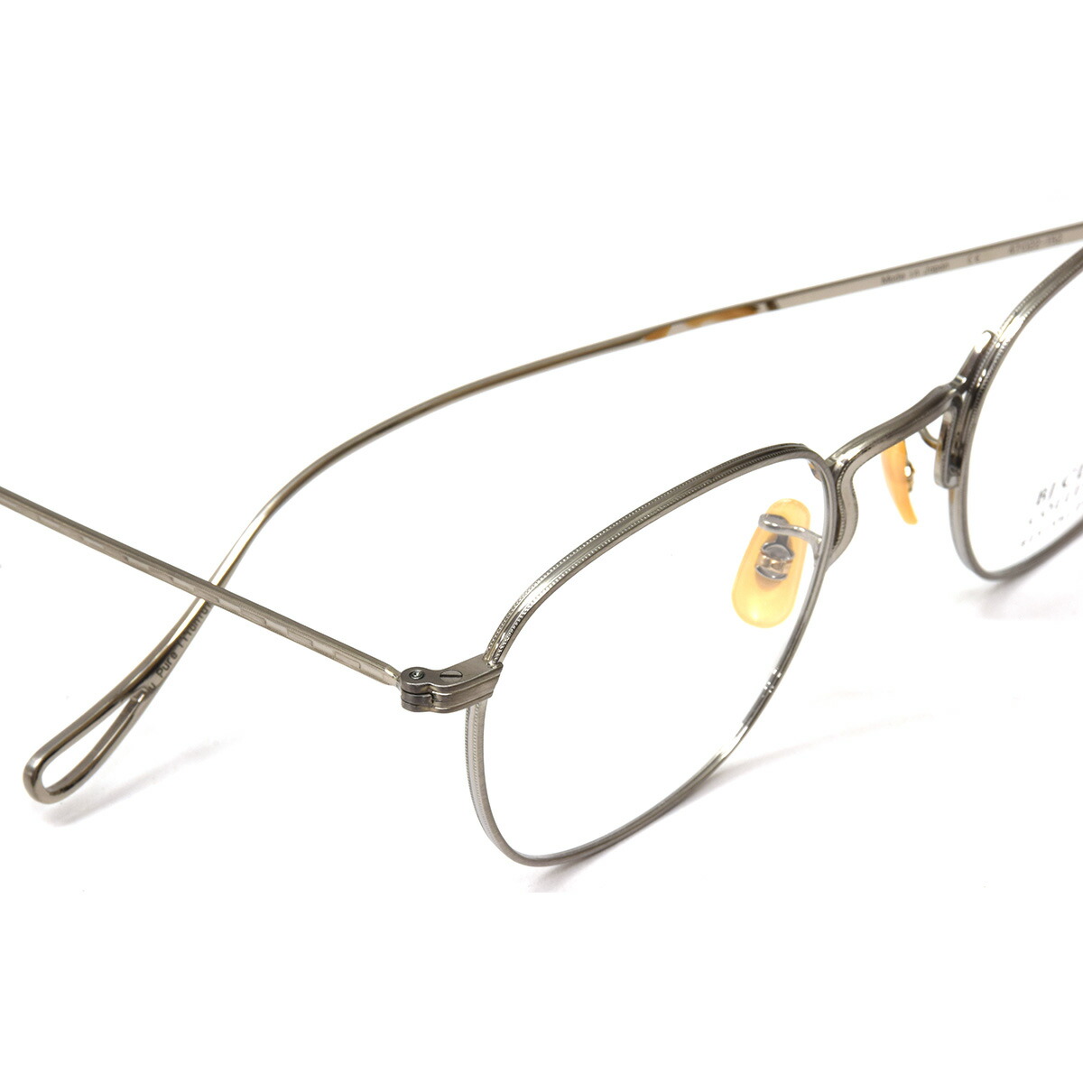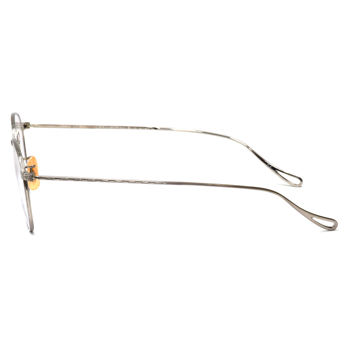 特徴的なブリッジの形状やリム周り、テンプルに施された繊細な彫金は、ヴィンテージ眼鏡の美しいディテールを忠実に再現しています。
