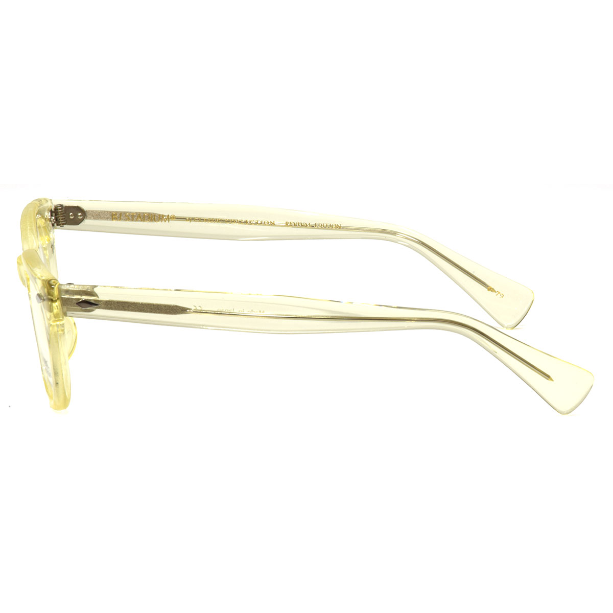 浅めのウェリントンシェイプが特長的な存在感あるひと型。無骨ながらも繊細なディテールや、テンプル先のしっかりと太めのデザインはクラシカルながらもカジュアルさを兼ね備え、ファッションのアクセントとして幅広く着用できるモデルとなっています。