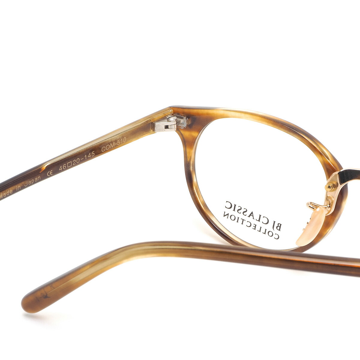 艶やかなプラスチックフレームのブリッジにゴールドメタルを合わせたコンビネーションフレーム。