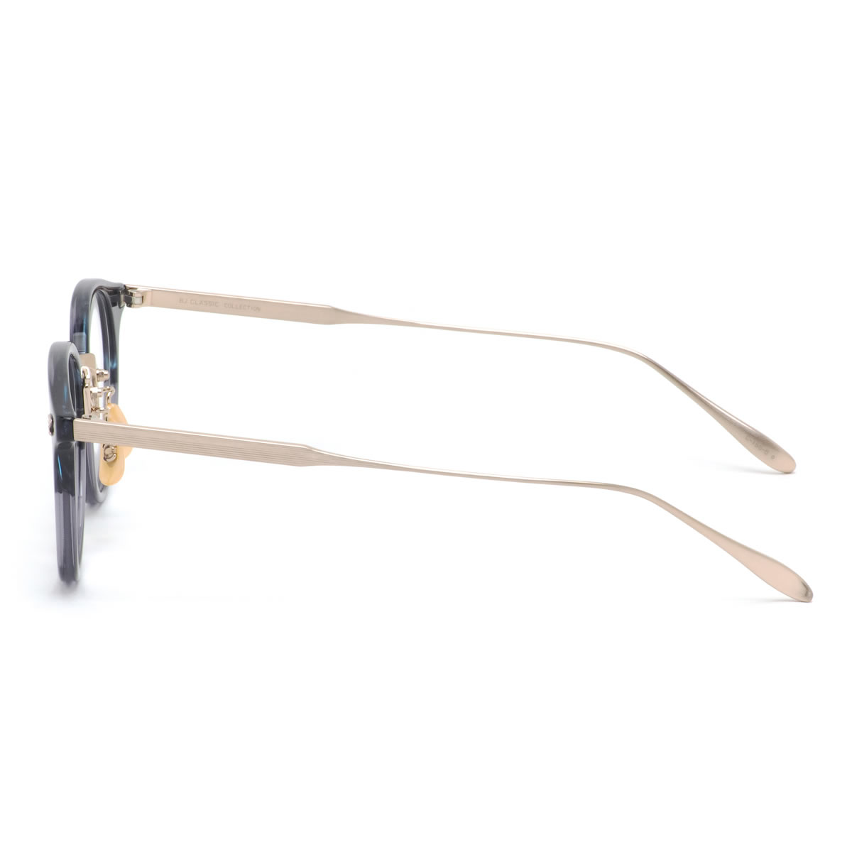 艶やかなプラスチックと、繊細で高級感漂うチタンとの組み合わせがエレガントなコンビネーションフレーム。