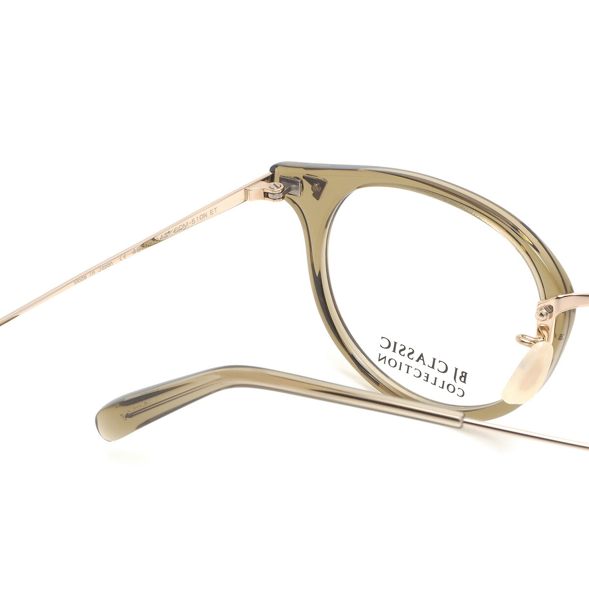 抜け感のあるクリアカラーアセテートフレームのブリッジにゴールドメタルを合わせたコンビネーションフレーム。