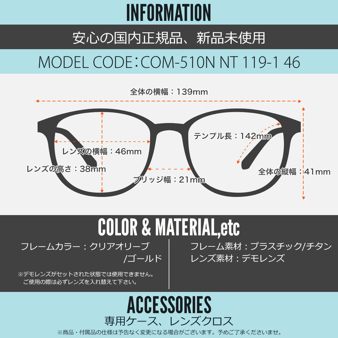 テンプルの長さ:142mm