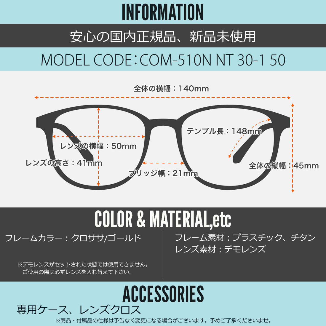 テンプルの長さ:148mm