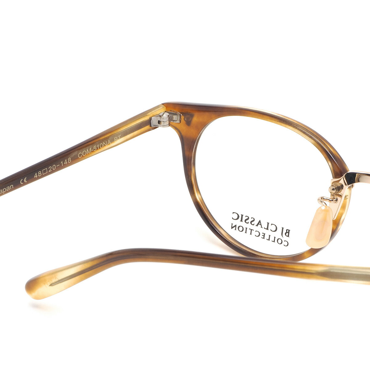 艶やかなプラスチックフレームのブリッジにゴールドメタルを合わせたコンビネーションフレーム。