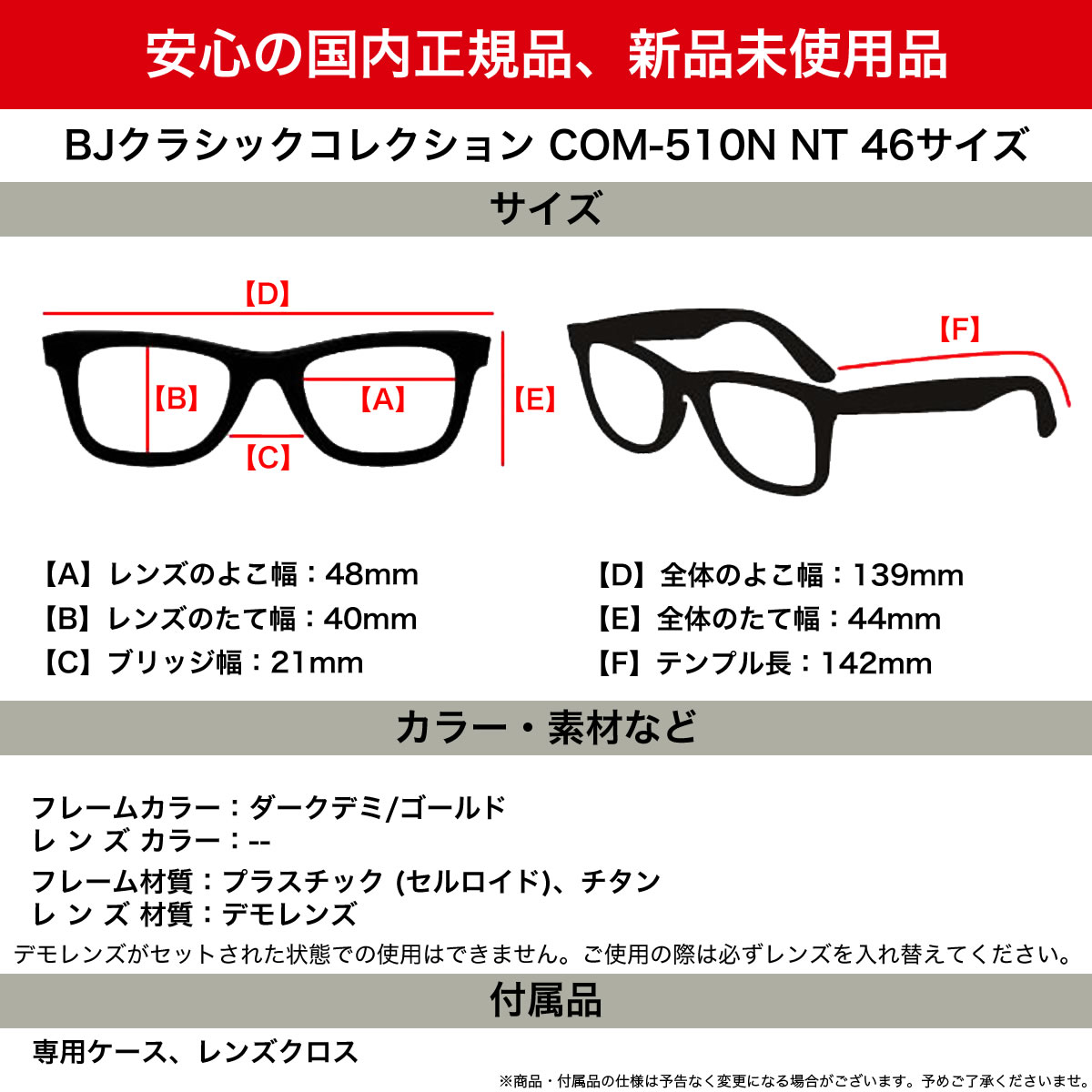テンプルの長さ:142mm