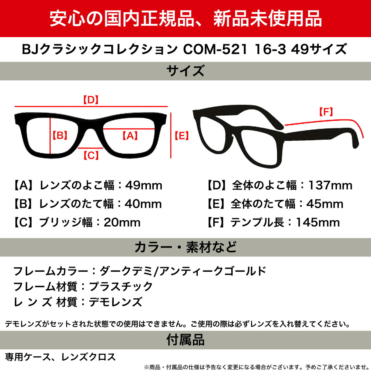 レンズ材質:デモレンズ
