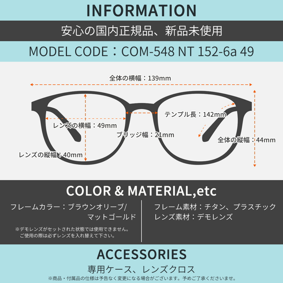 テンプルの長さ:142mm