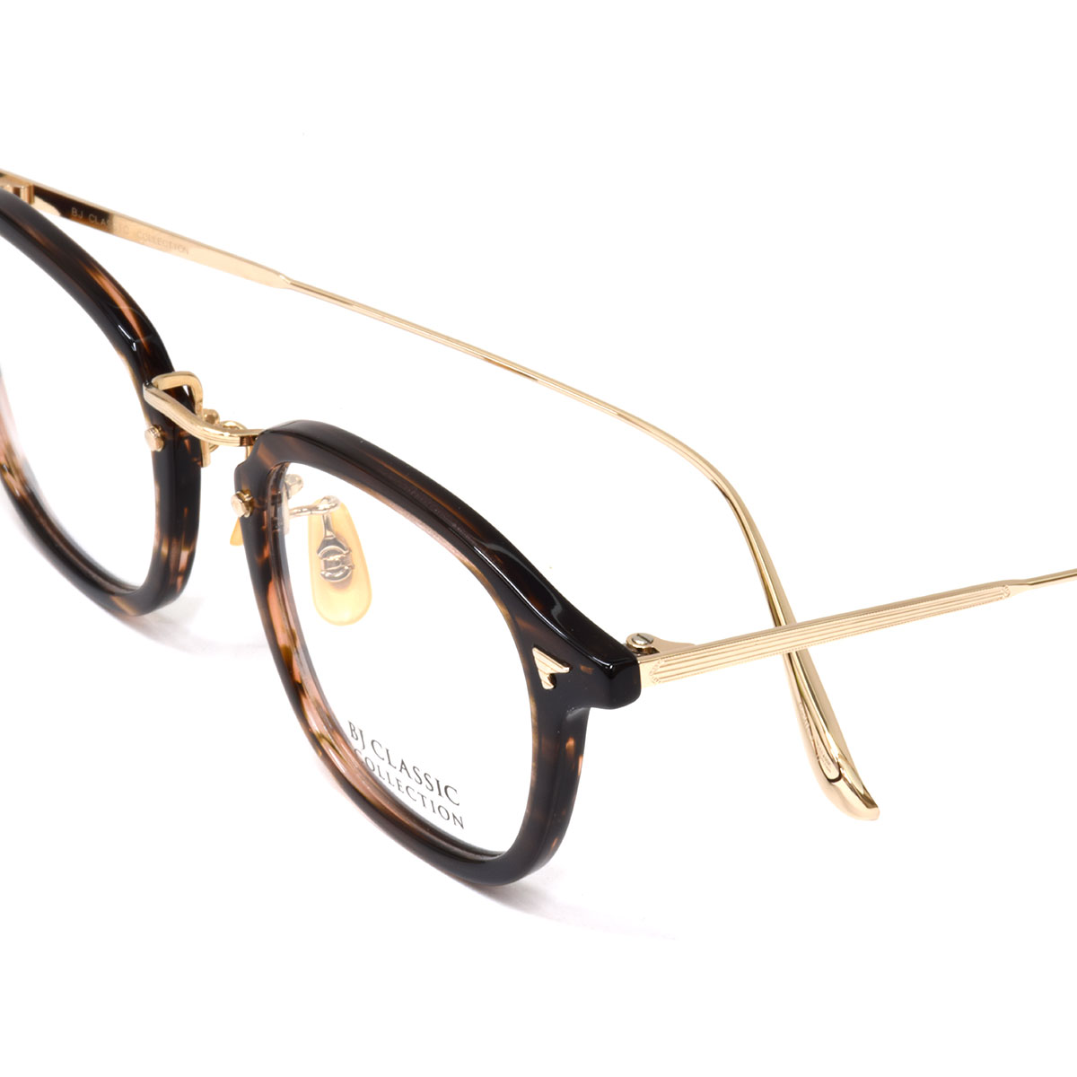 上品なツヤ感が際立つセルフレームに、ゴールドメタルの輝きが洗練された魅力を放つコンビネーションモデルCOM-551A IT。