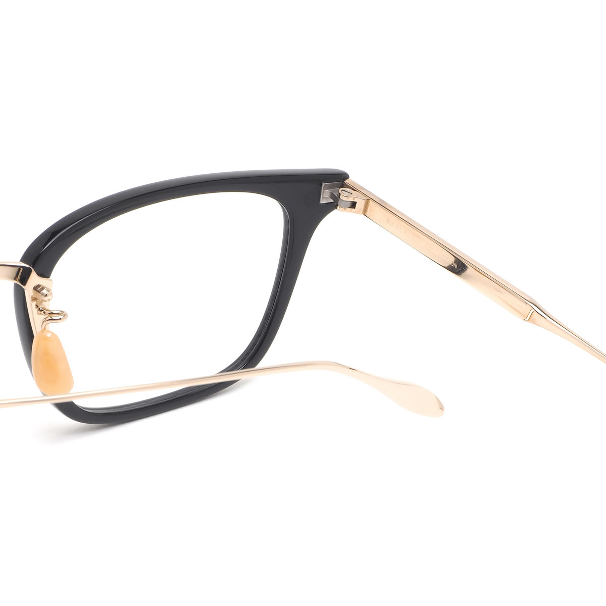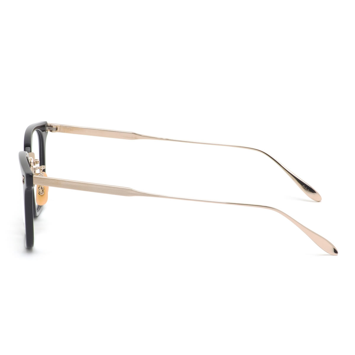 艶やかなプラスチックと、繊細で高級感漂うチタンとの組み合わせがエレガントなコンビネーションフレーム。