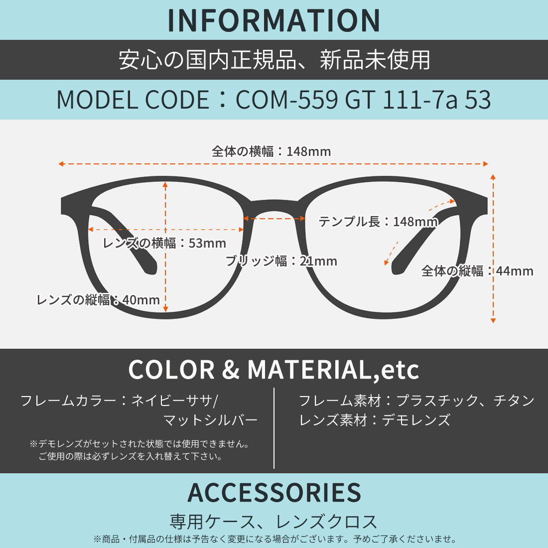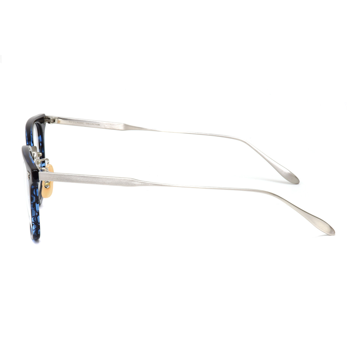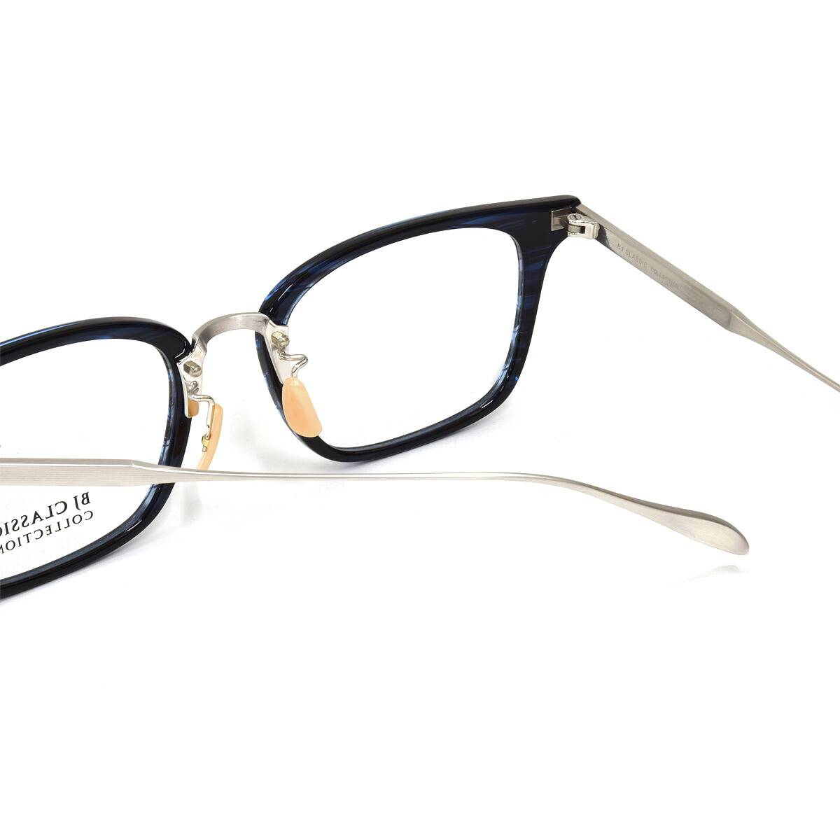 艶やかなプラスチックと、繊細で高級感漂うチタンとの組み合わせがエレガントなコンビネーションフレーム。