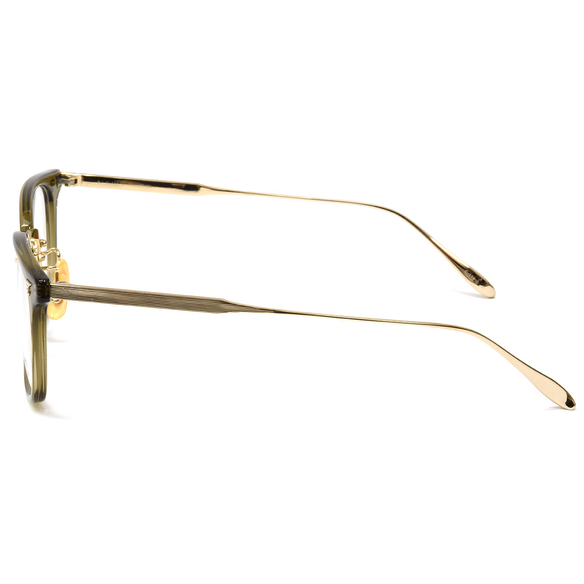 艶やかなプラスチックと、繊細で高級感漂うチタンとの組み合わせがエレガントなコンビネーションフレーム。