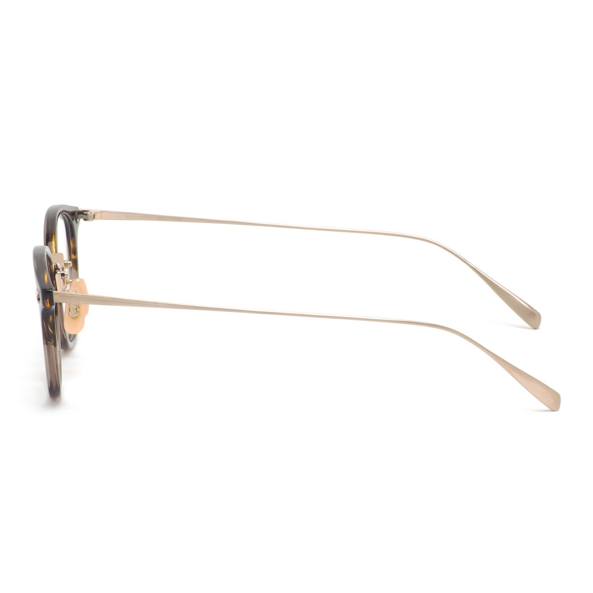 艶やかなプラスチックと、繊細で高級感漂うチタンとの組み合わせがエレガントなコンビネーションフレーム。