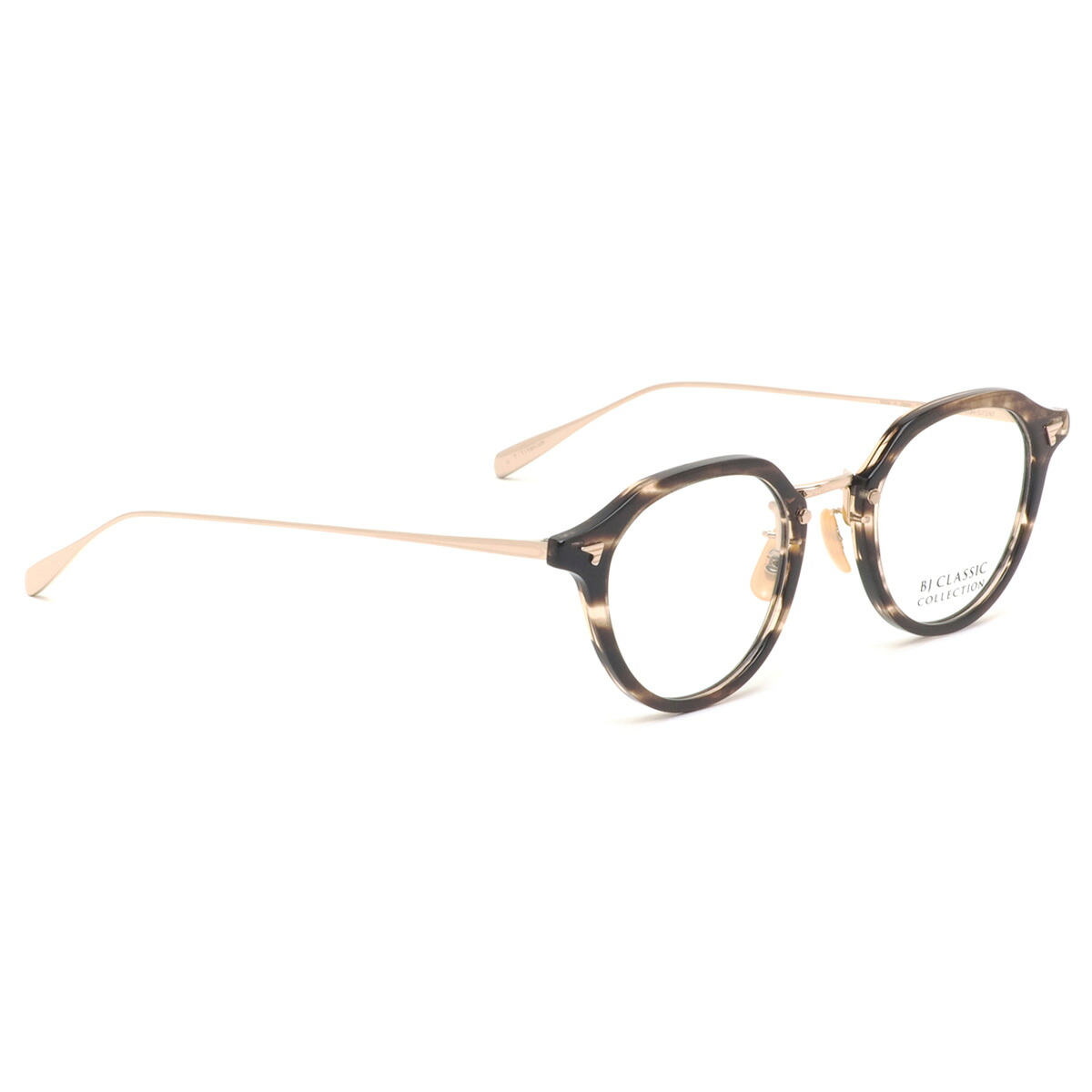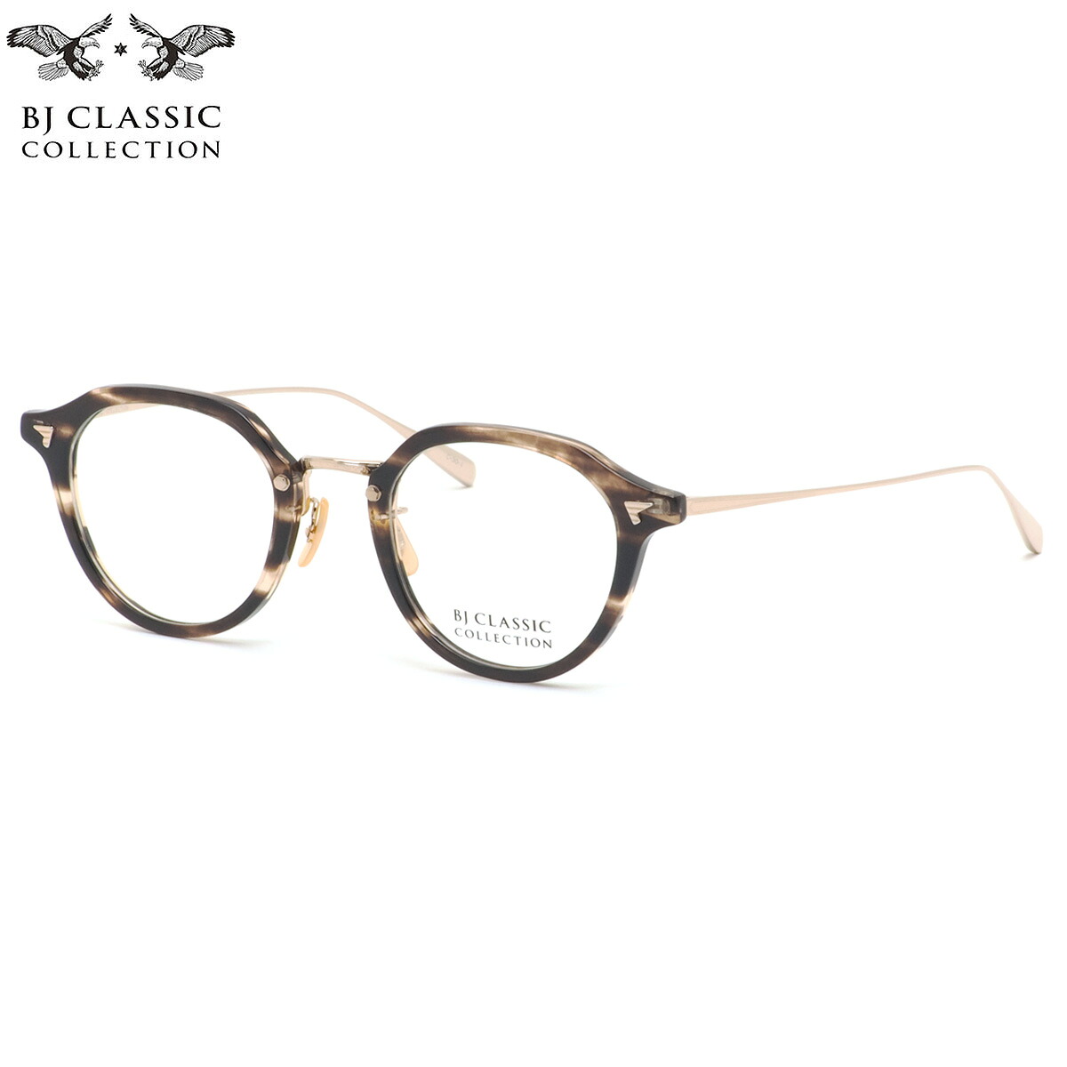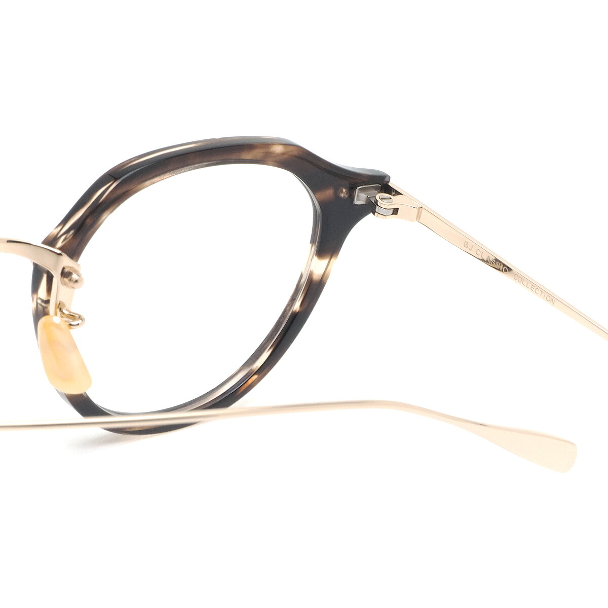 メタルとプラスチックが融合した、コンビネーションタイプのクラシックなシリーズで、とりわけ、フロントがプラスチックでテンプルとブリッジがメタルのコンビネーションタイプは、BJ CLASSIC COLLECTIONの代表作ともいえる存在となっています。