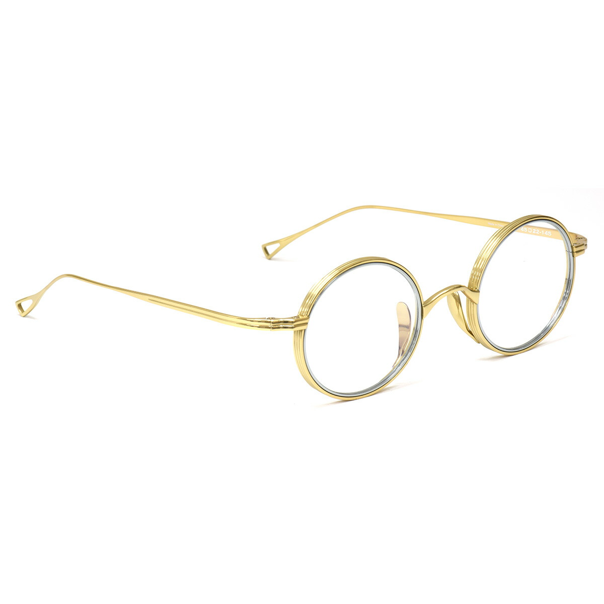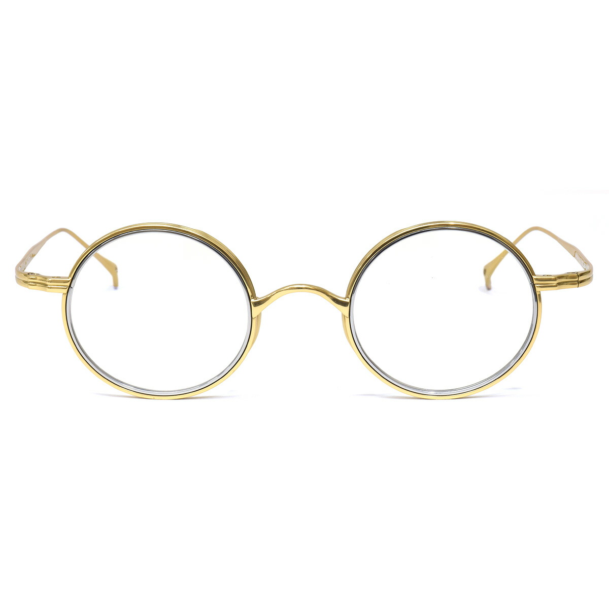 軽やかなチタン素材を採用し、快適なかけ心地と耐久性を両立しました。クラシカルな印象のラウンドフレームは、知的な雰囲気を演出します。