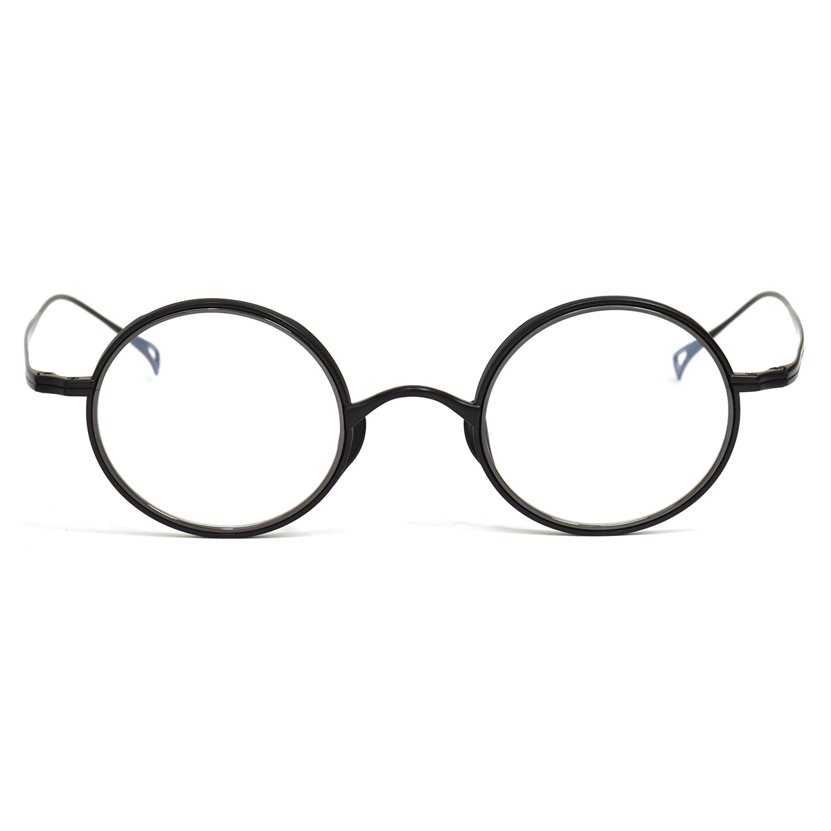軽やかなチタン素材を採用し、快適なかけ心地と耐久性を両立しました。クラシカルな印象のラウンドフレームは、知的な雰囲気を演出します。