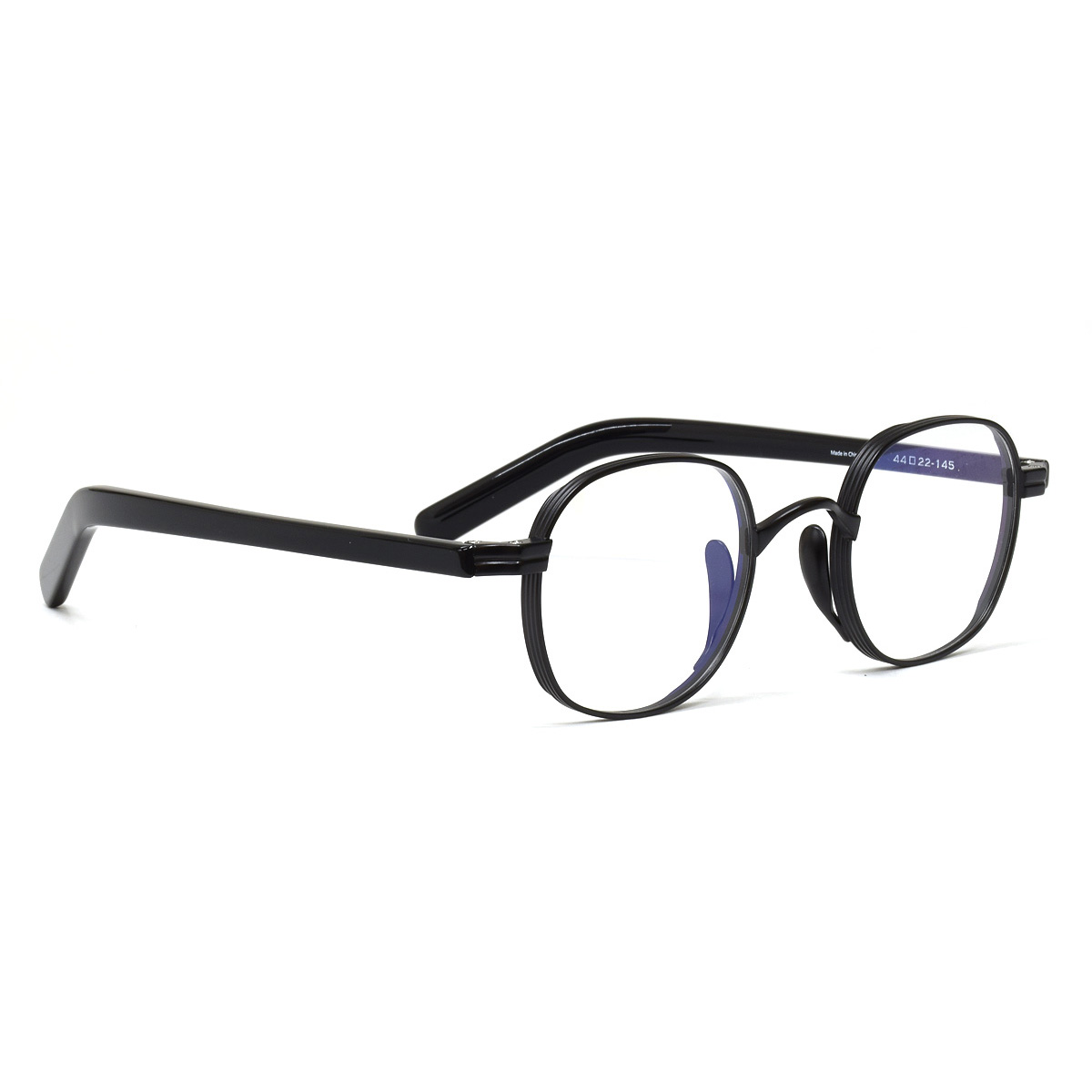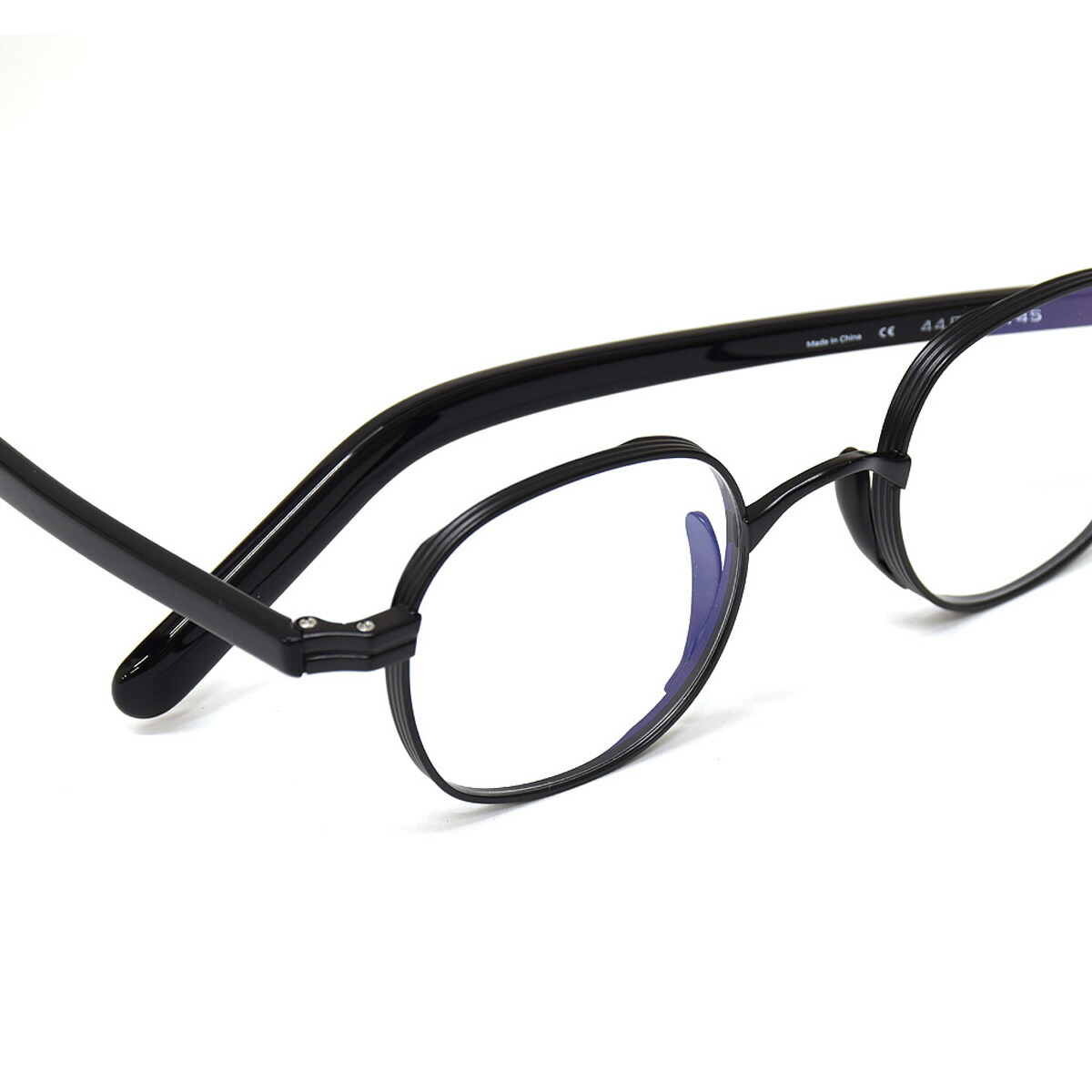 フロントには軽量で丈夫なチタン、テンプルには柔らかなプラスチックを採用した、コンビネーションフレームです。異なる素材のコントラストが、洗練された印象を与えます。