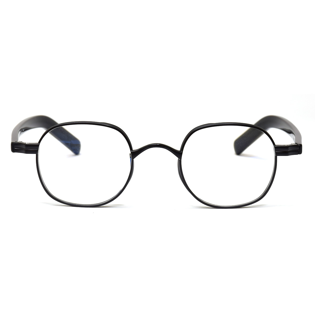ラウンドとスクエアを掛け合わせたようなコンパクトサイズのリムは、クラシカルかつモダンな雰囲気であなたのスタイルを格上げ。サイドの存在感のあるテンプルが、横顔にさりげないアクセントを添えます。