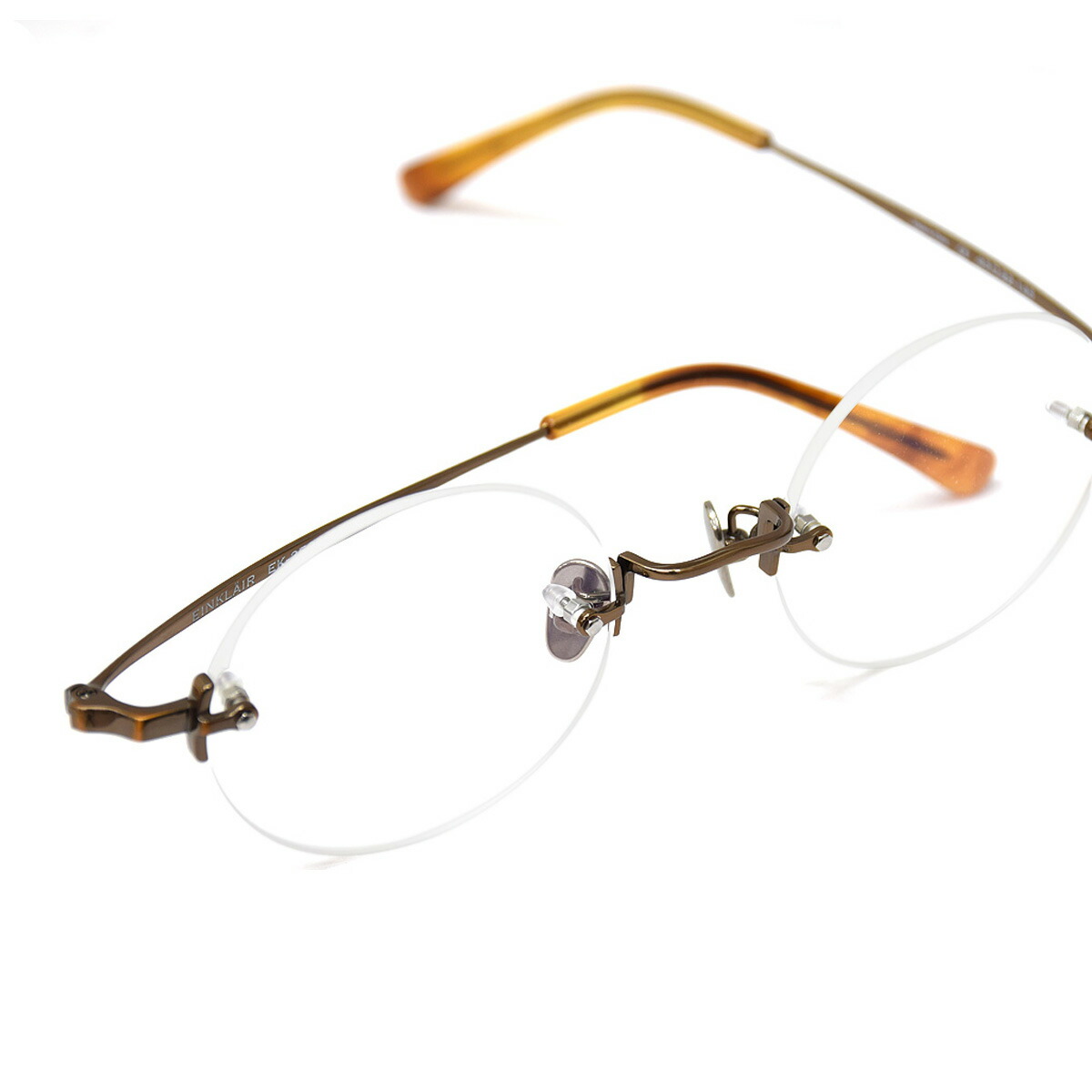 レンズには柔らかな表情を生む正円に近いラウンドシェイプを採用。顔なじみが良く、クラシカルながらもモダンな雰囲気を演出します。