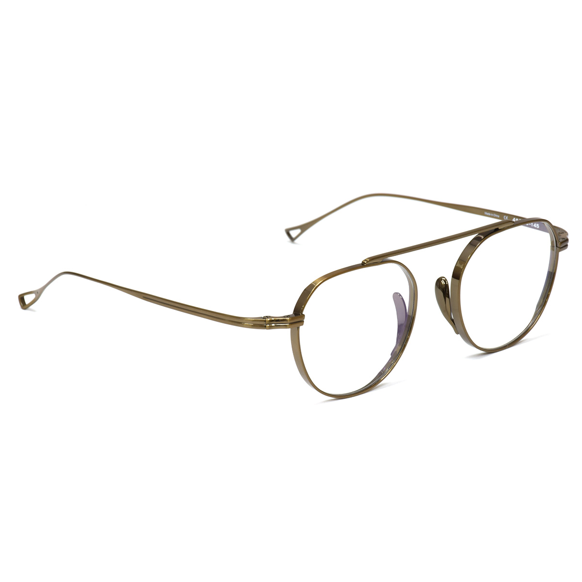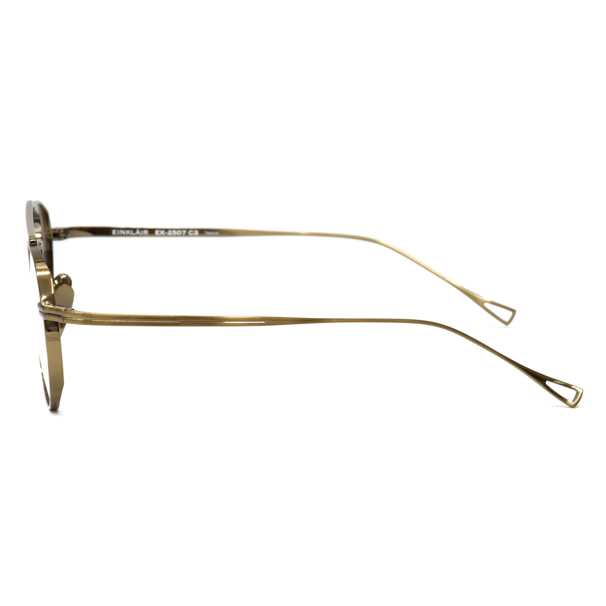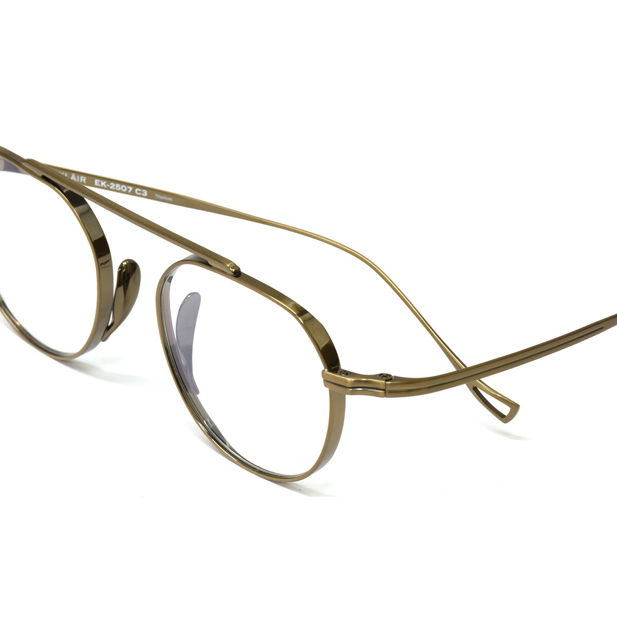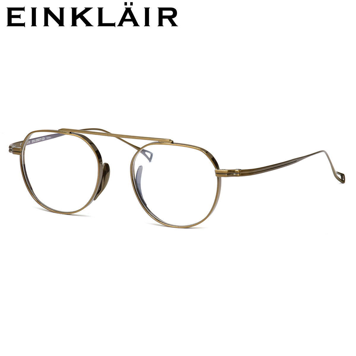 フレームは、軽くてタフなチタン製。しっかりとした厚リムが造形に奥行きを加え、凛とした存在感を演出します。さらにメタルパッドを採用し、長時間でもズレにくく快適なフィット感を実現。控えめなのに印象に残る。EINKLAIRらしいバランス感が光る、一本です。