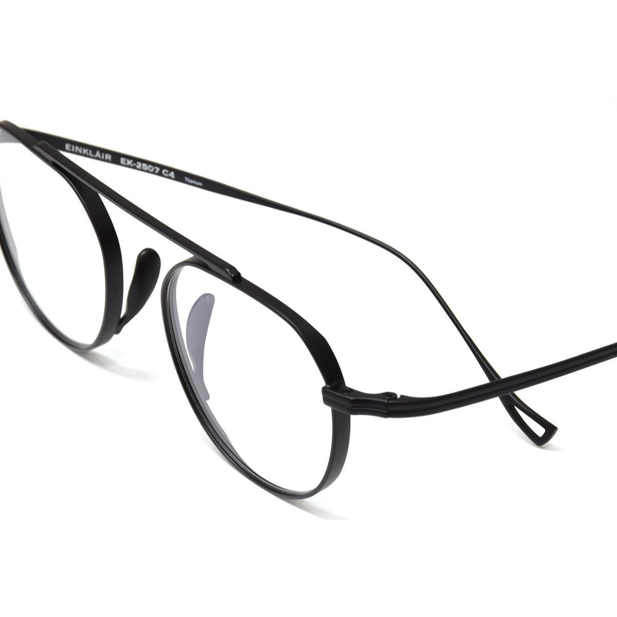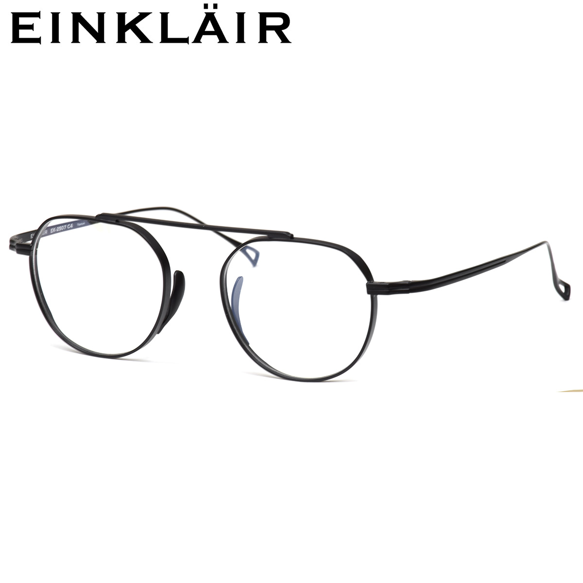 フレームは、軽くてタフなチタン製。しっかりとした厚リムが造形に奥行きを加え、凛とした存在感を演出します。さらにメタルパッドを採用し、長時間でもズレにくく快適なフィット感を実現。控えめなのに印象に残る。EINKLAIRらしいバランス感が光る、一本です。