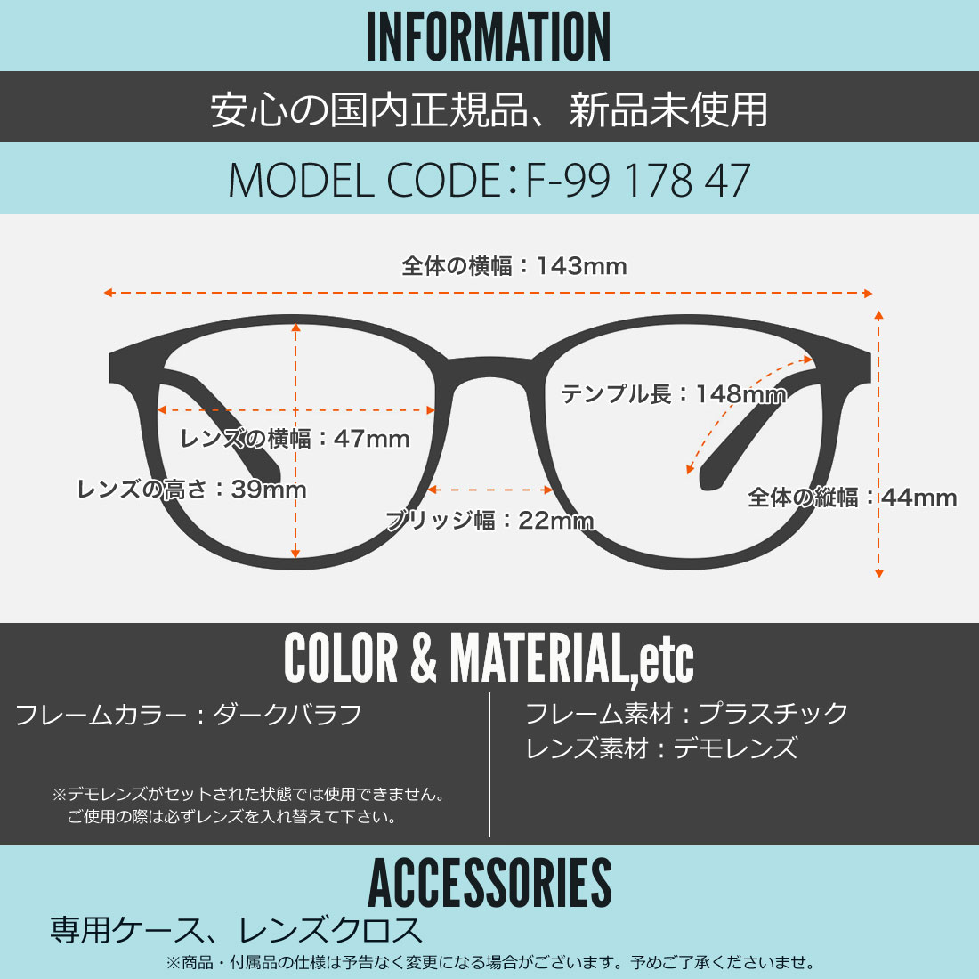 フレーム材質:プラスチック (アセテート)