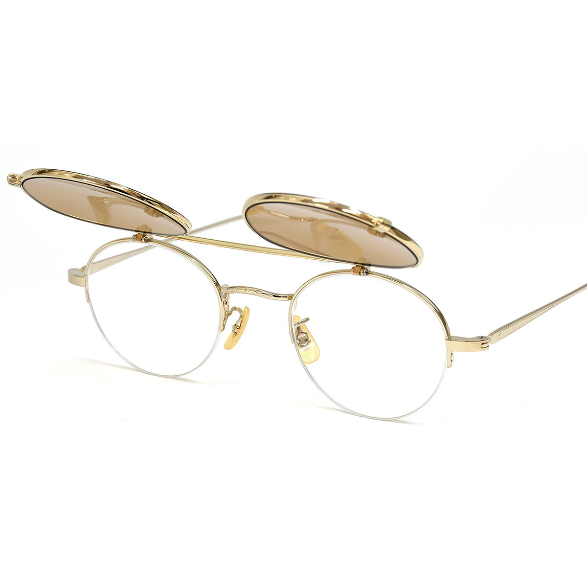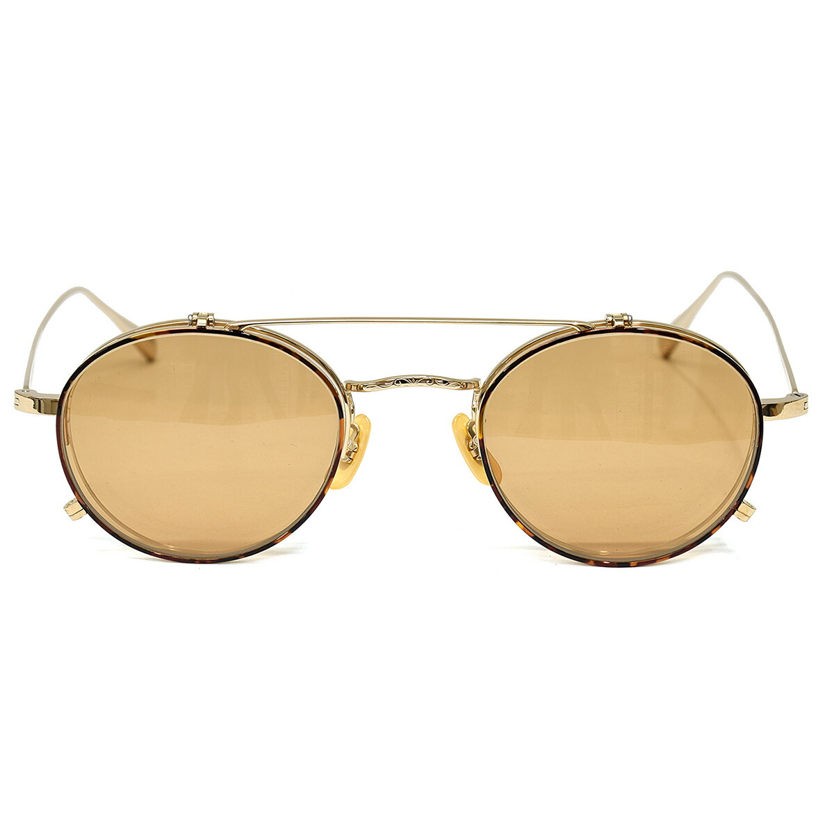 ゴールドの輝きにブラウンデミを施してクラシカルな印象をプラス。レンズにもブラウンをはめ込み、どなたにも着用しやすいカラーリングです。