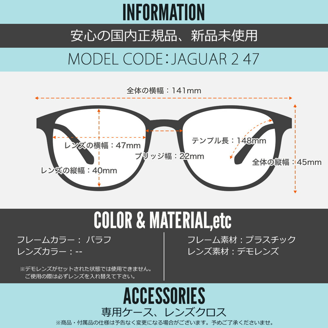 テンプルの長さ:148mm