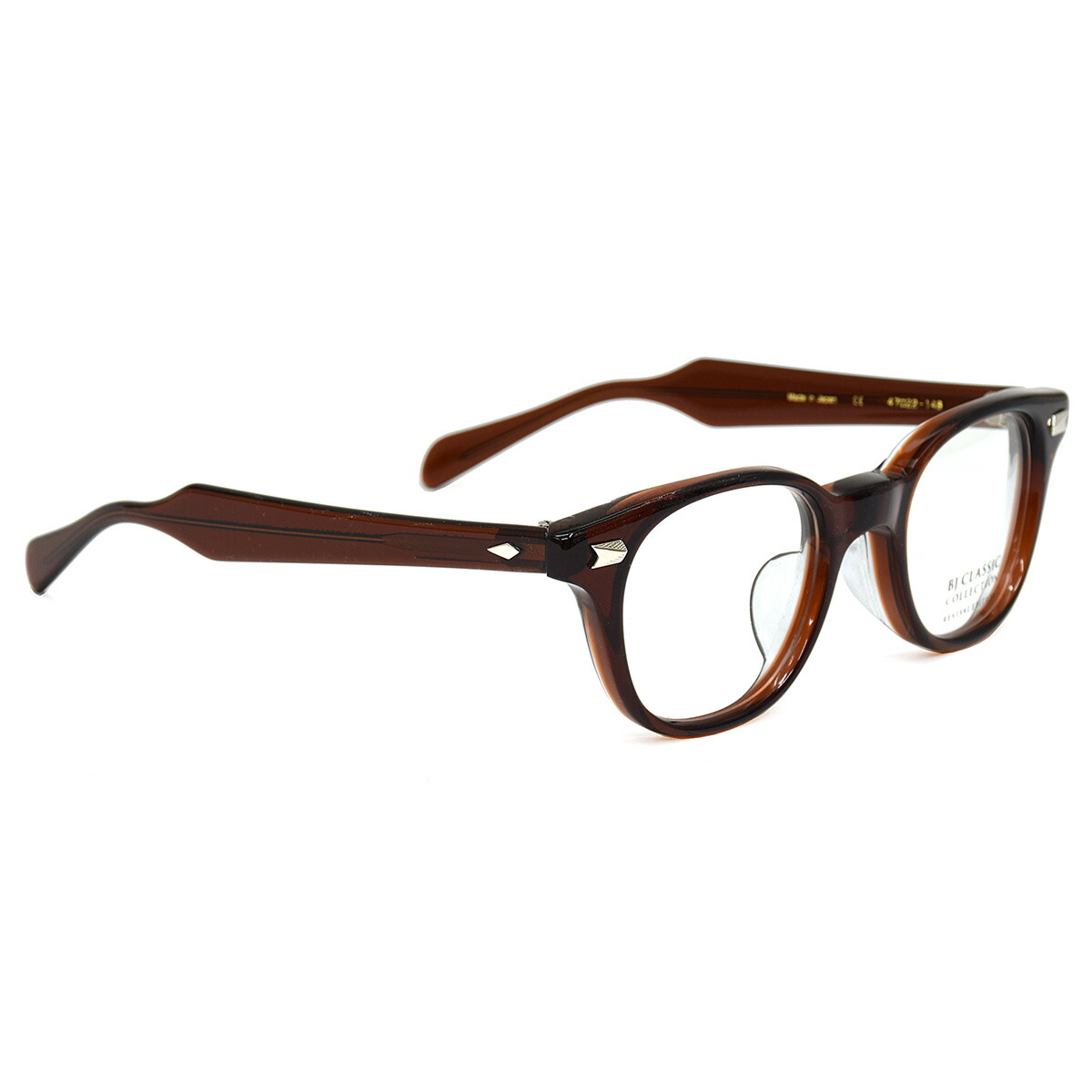 《 BJ CLASSIC COLLECTION 》は、日本を代表するアイウェアブランド。アメリカンクラシックをデザインの源流としつつ、西洋人と日本人の骨格の違いを意識し、サイズ、フォルムをリファイン。日本製の品質の高さと、掛け心地の良さ、そして徹底した日本人に似合うデザインの追求によって、時代の流れに翻弄されることのない1本を紡ぎ出している。