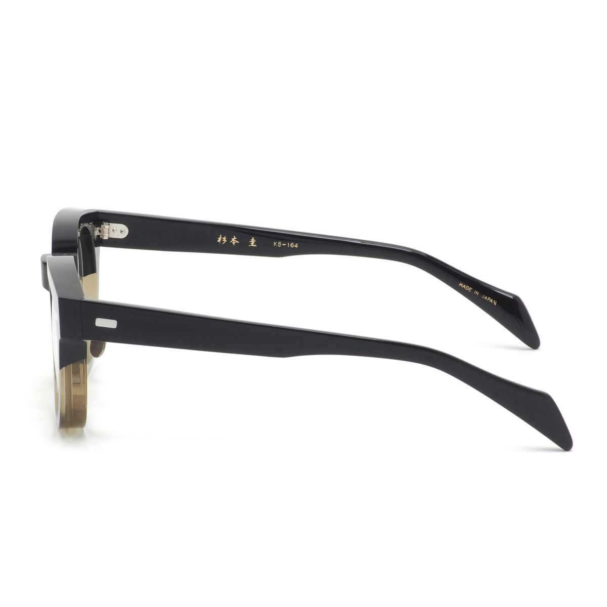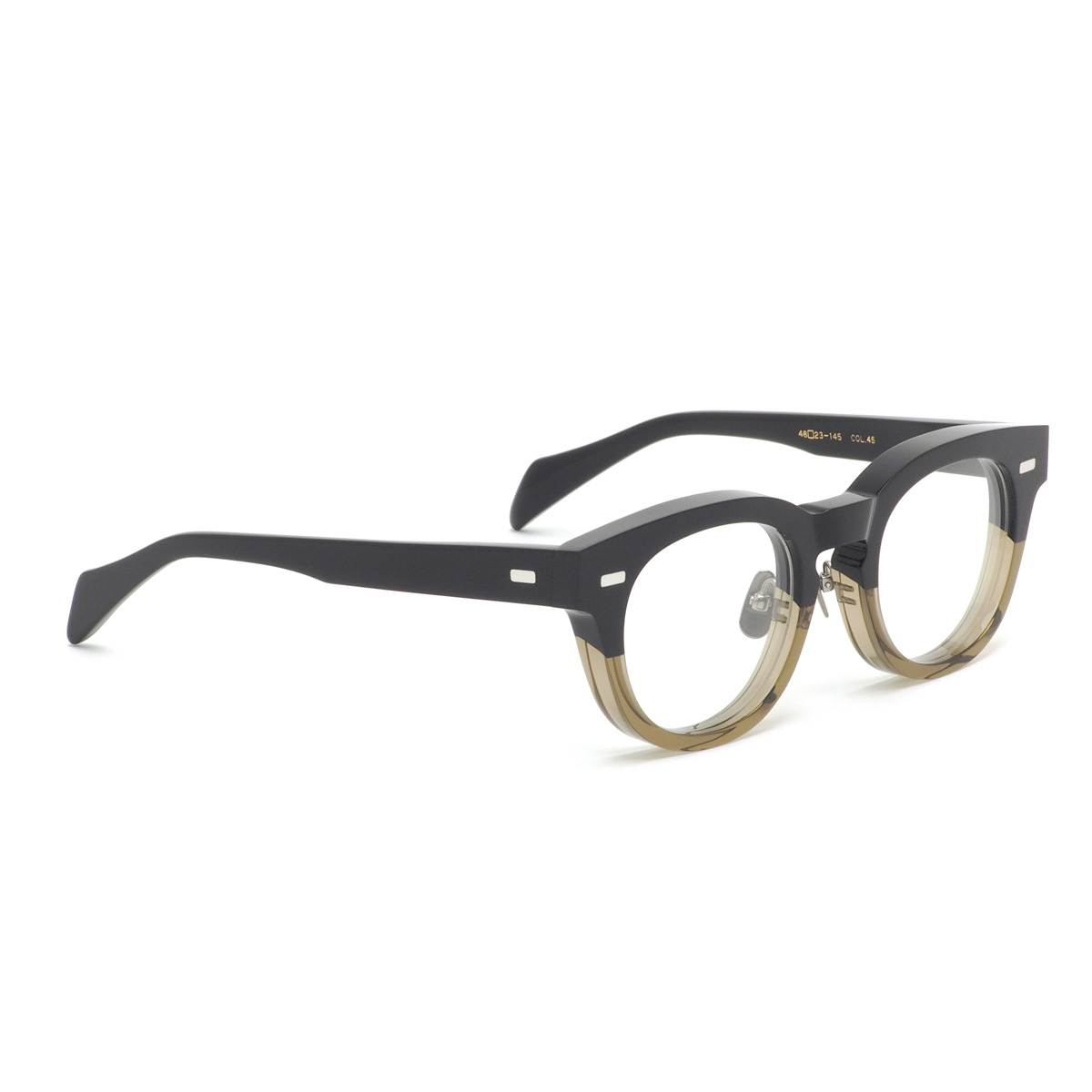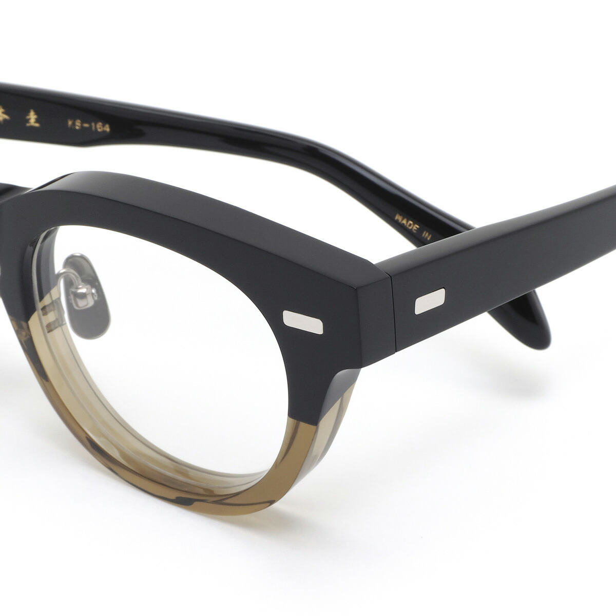 テンプルは、フロントに比べいくぶん薄めの生地で作られており、フロントから繋がる付近はしっかりカドを出しつつ、お耳に掛かる部分は面取りを施して肌あたりにも配慮されています。チタン製足付き鼻パッドを採用していますので、お顔立ちに合わせた調整が可能で掛け心地も快適です。