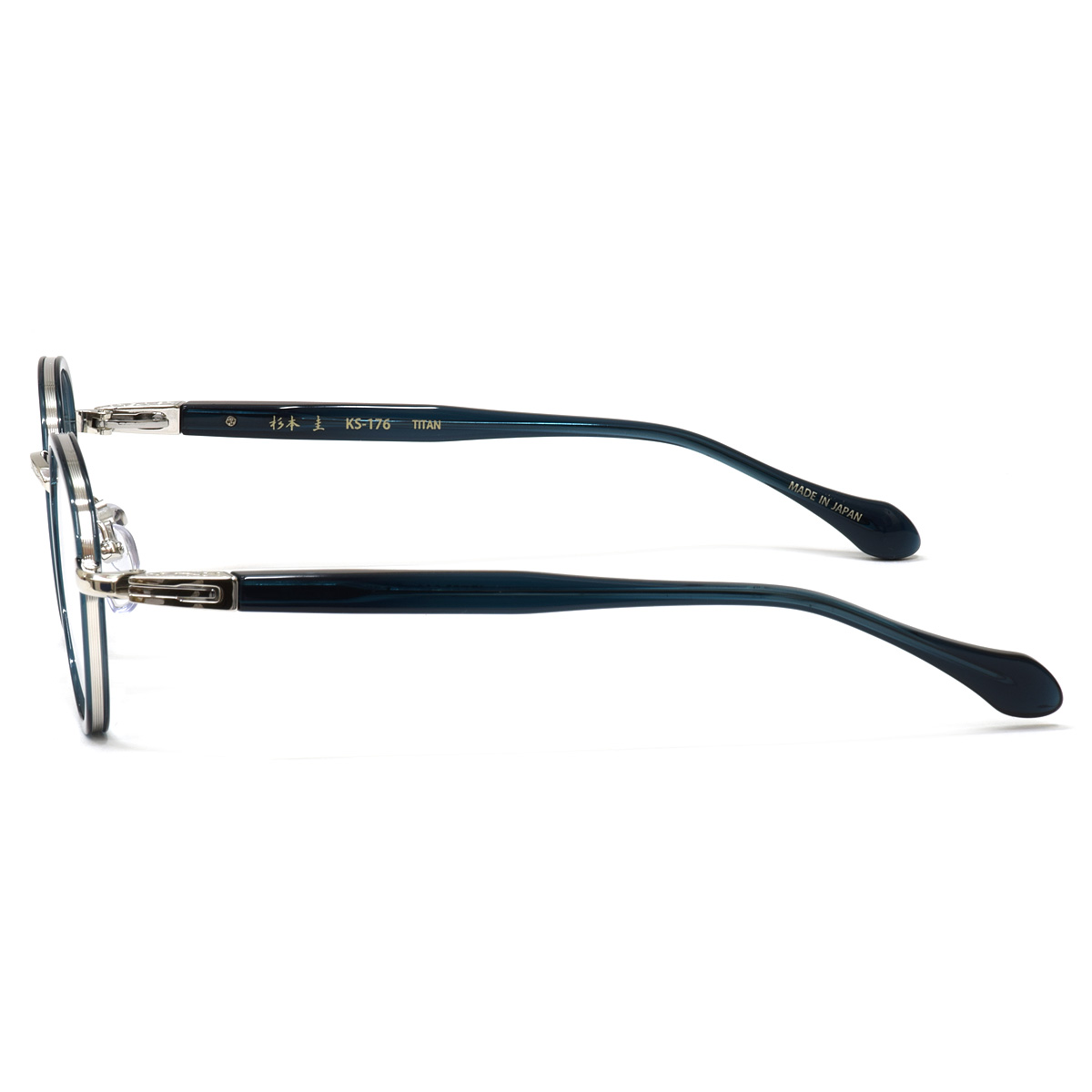 「col.88」はシャイニーシルバーのチタンとブルーのアセテートを組み合わせた爽やかで清涼感のあるカラーです。