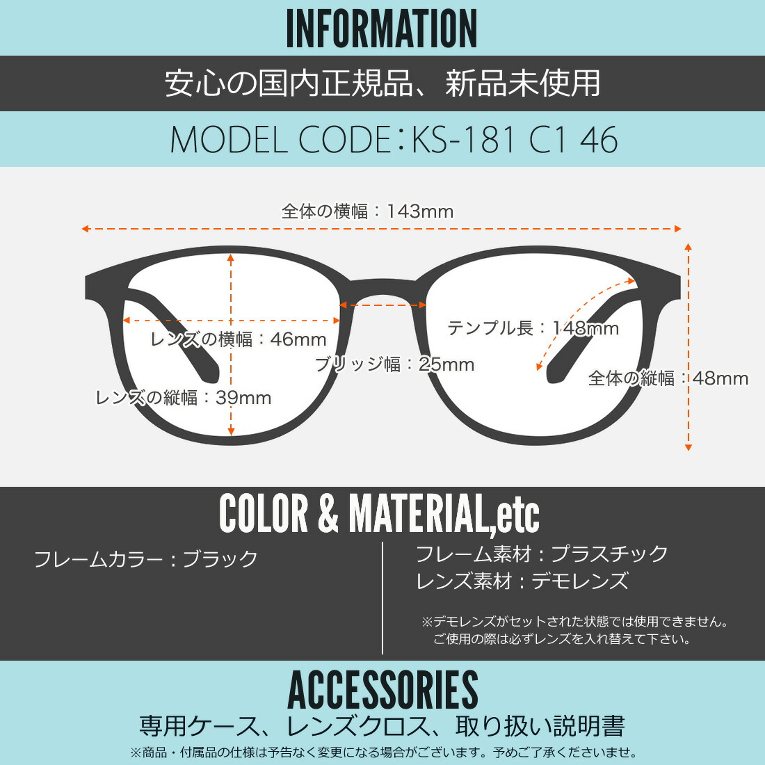 テンプルの長さ:148mm