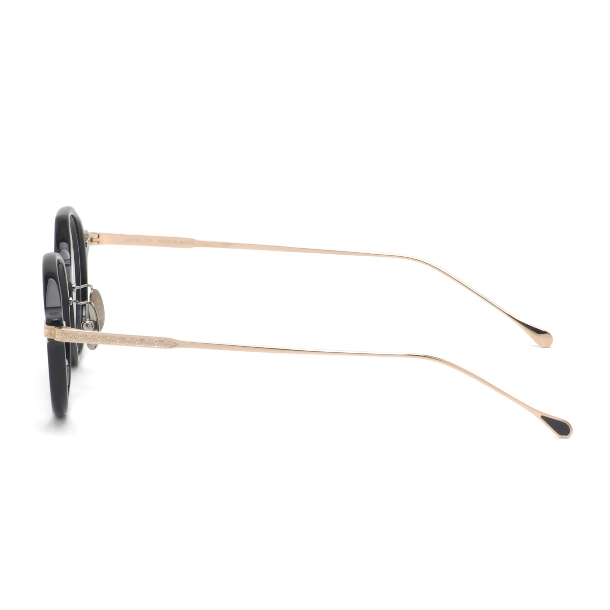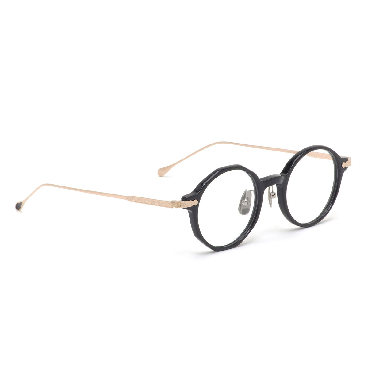 col.1「ブラック/ゴールド」は、艶ありのブラックカラーフロントに、光沢のあるゴールドカラーのテンプルの組み合わせです。