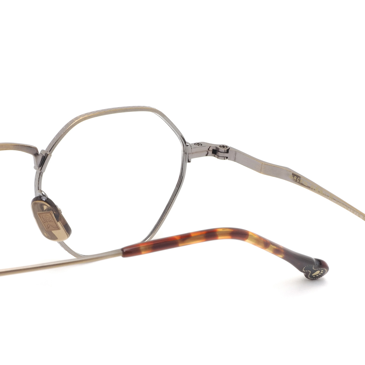 「Col.3」はアンティークゴールドのフレームにべっ甲柄の先セルを合わせたクラシカルなお色です。テンプルエンドには熊の足形模様があしらわれ、作り手の遊び心が感じられます。