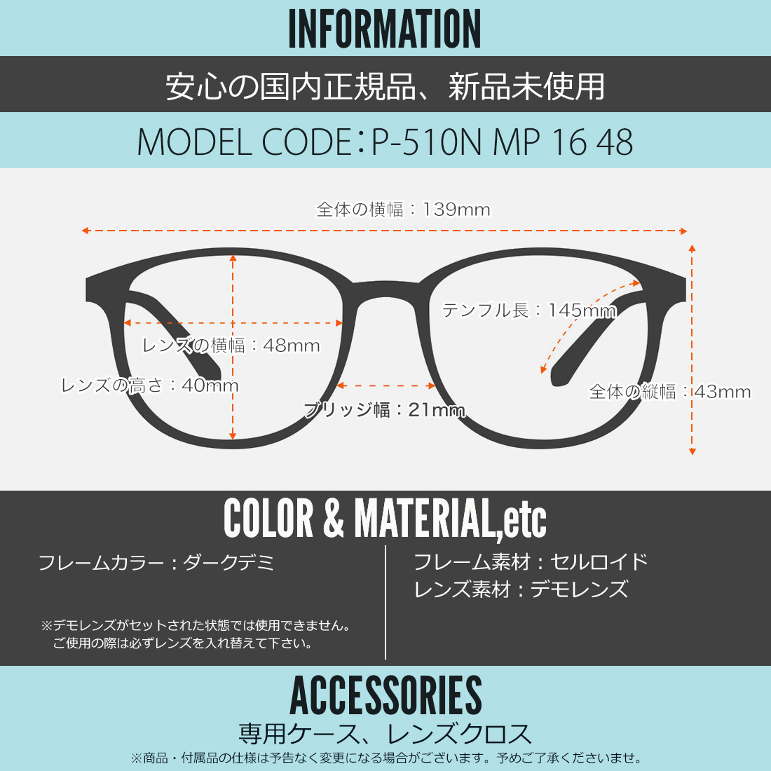 テンプルの長さ:145mm