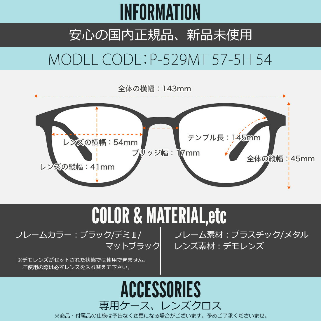 テンプルの長さ:143mm