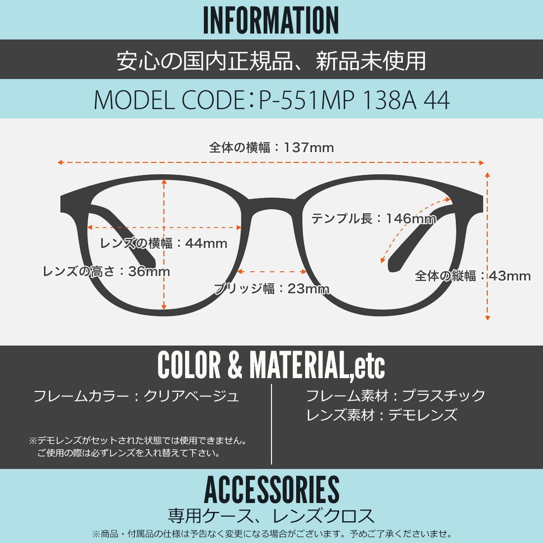 テンプルの長さ:146mm