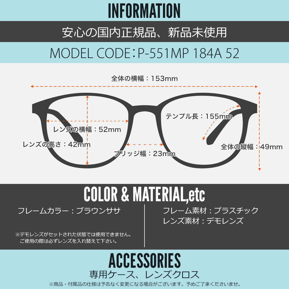 テンプルの長さ:155mm