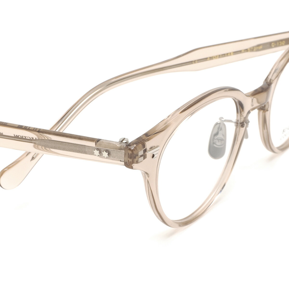 フロントサイドには翼の形の鋲、テンプルには星形のカシメ飾りを採用し、シンプルなフレームに遊び心のあるアクセントを加えています。