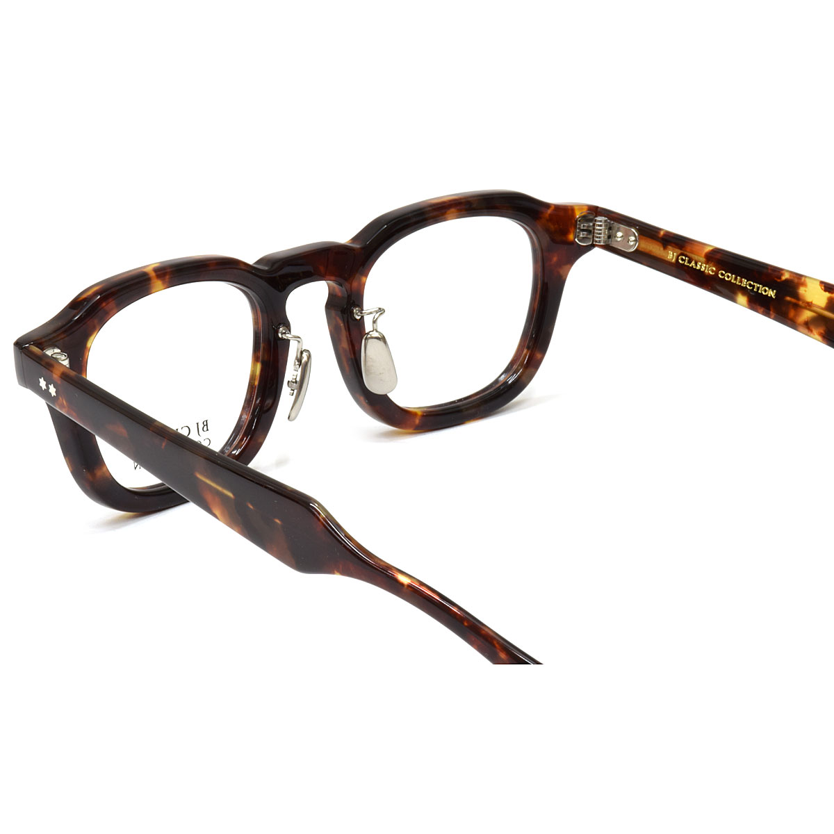 《 BJ CLASSIC COLLECTION 》は、日本を代表するアイウェアブランド。アメリカンクラシックをデザインの源流としつつ、西洋人と日本人の骨格の違いを意識し、サイズ、フォルムをリファイン。日本製の品質の高さと、掛け心地の良さ、そして徹底した日本人に似合うデザインの追求によって、時代の流れに翻弄されることのない1本を紡ぎ出している。