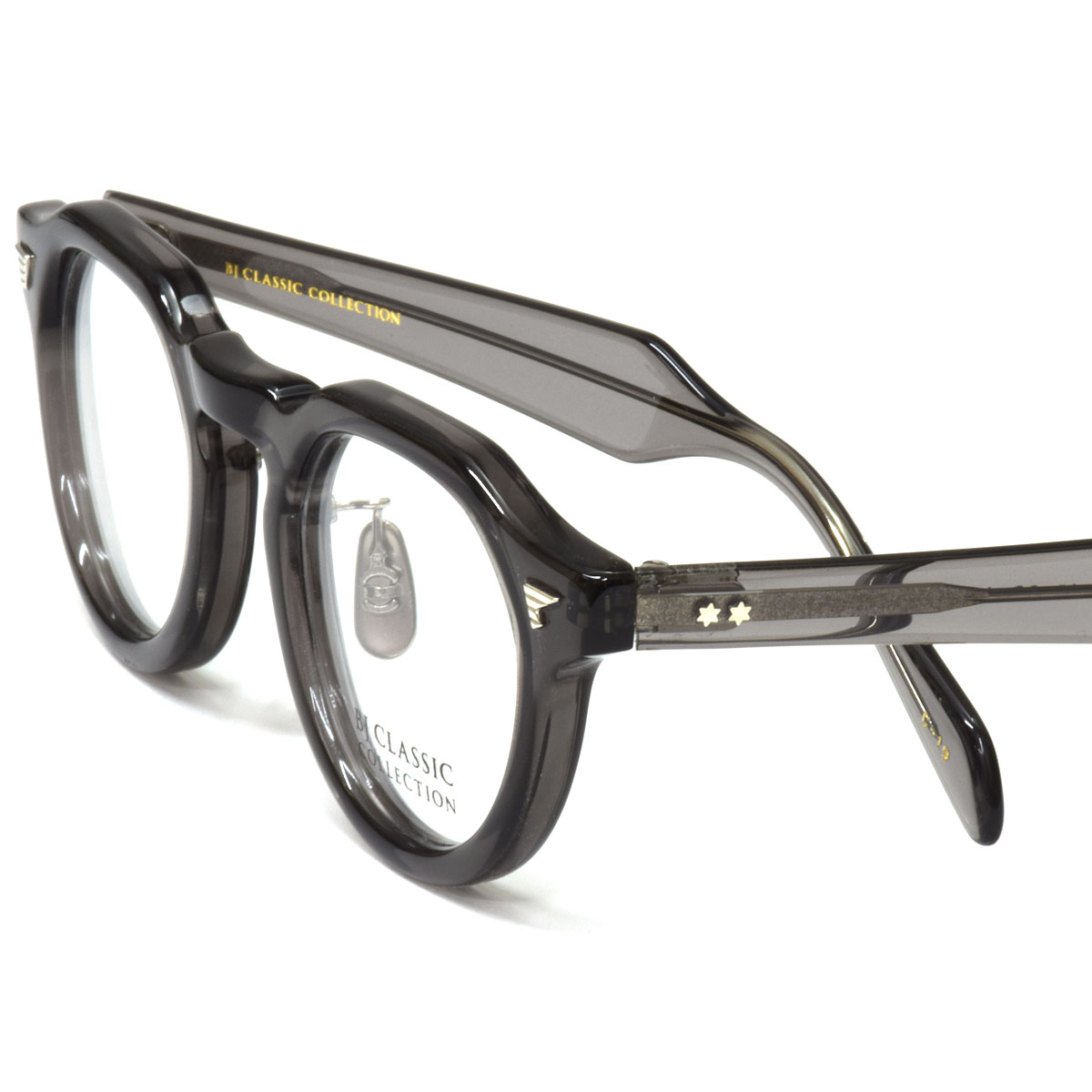 《 BJ CLASSIC COLLECTION 》は、日本を代表するアイウェアブランド。アメリカンクラシックをデザインの源流としつつ、西洋人と日本人の骨格の違いを意識し、サイズ、フォルムをリファイン。日本製の品質の高さと、掛け心地の良さ、そして徹底した日本人に似合うデザインの追求によって、時代の流れに翻弄されることのない1本を紡ぎ出している。