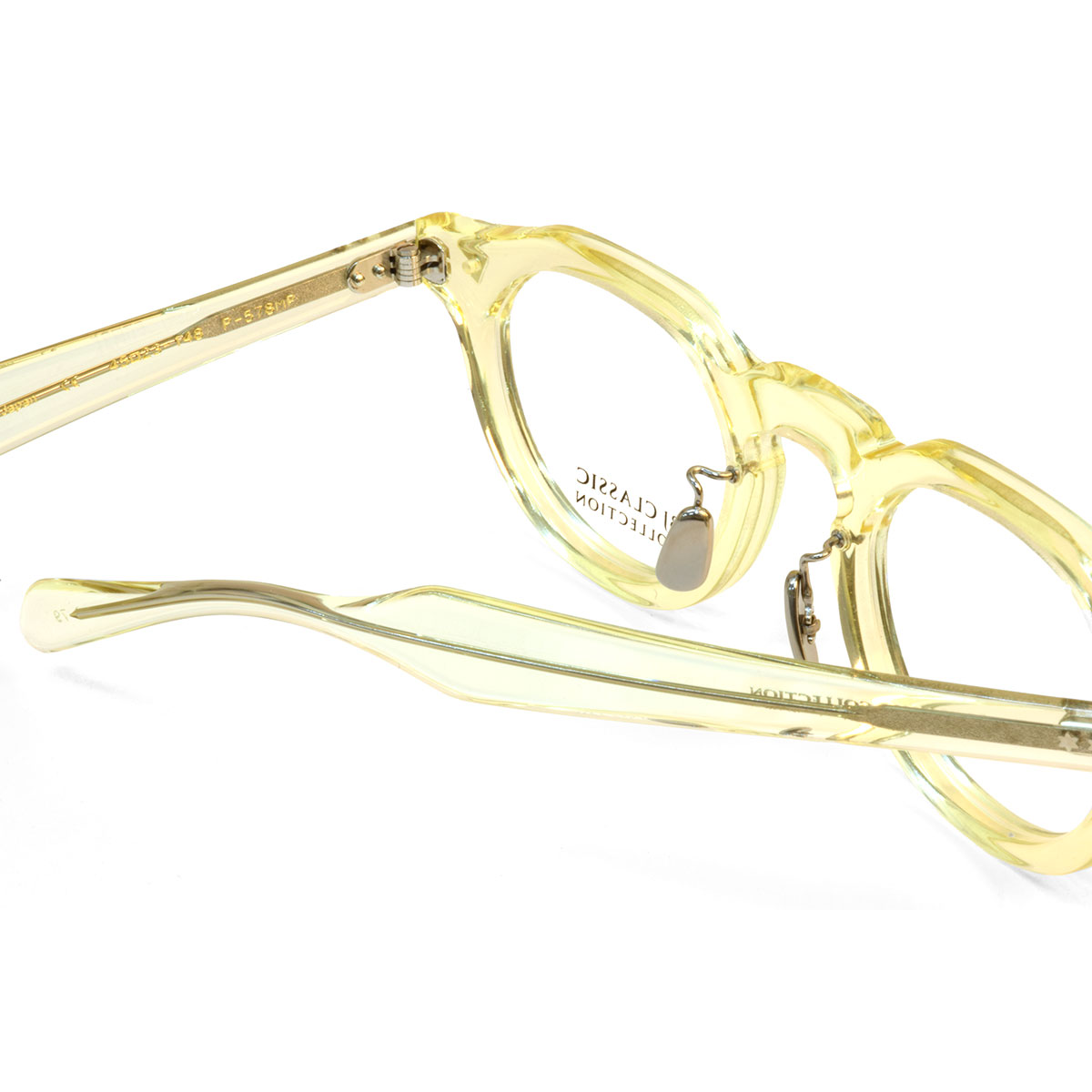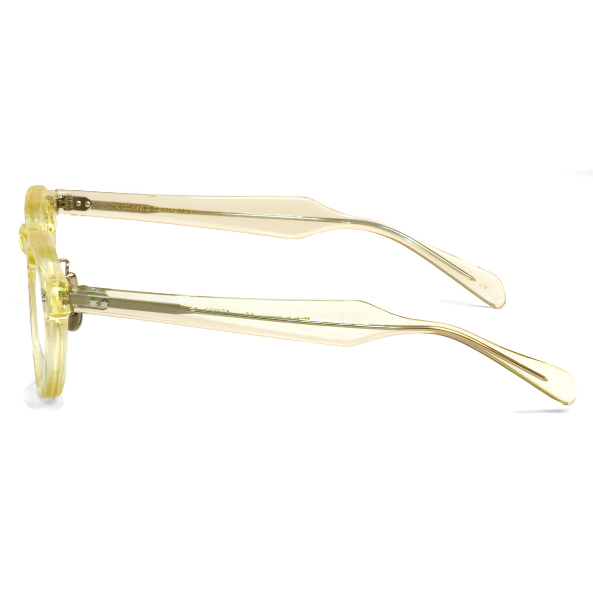 いくぶん厚みがあるフロントと、重くなりすぎないよう薄めに設計されたテンプルの組み合わせは絶妙で、丁寧に磨き上げられたセルロイド素材の滑らかな質感が美しく、フレンチヴィンテージを感じさせるフレームです。
