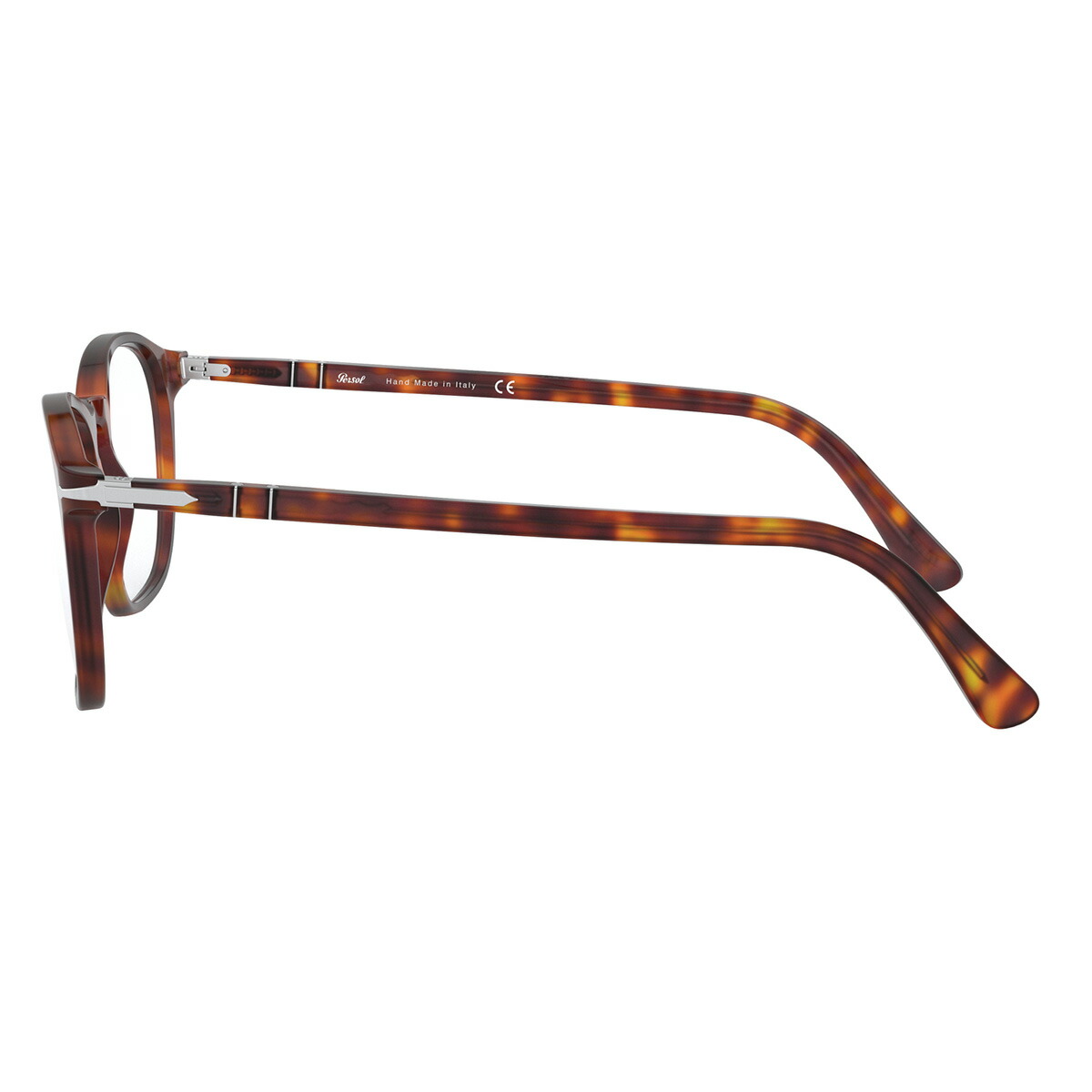 ヨロイには、Persolのブランドアイコンである「シルバーアロー」が施され、フロントサイドからテンプルへの一体感を生み出しています。