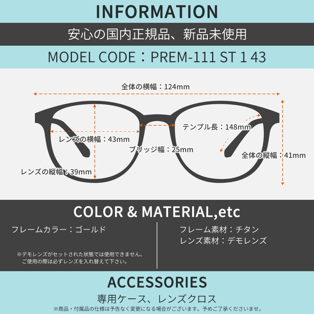 テンプルの長さ:148mm