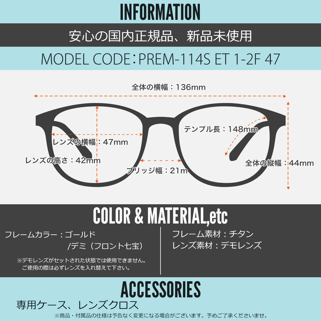 テンプルの長さ:148mm