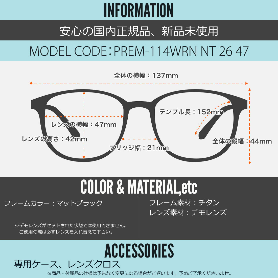 テンプルの長さ:152mm