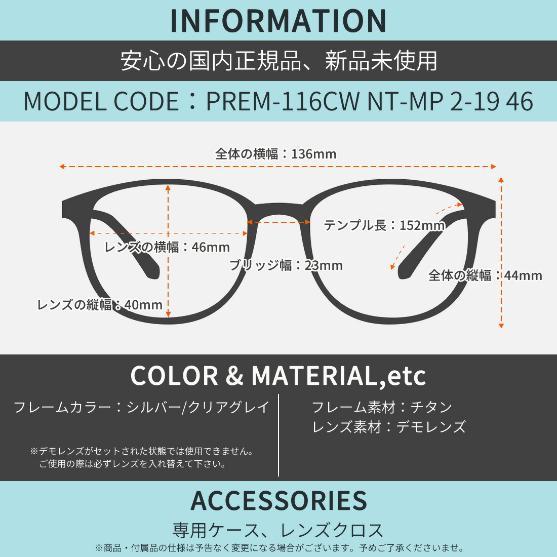 テンプルの長さ:152mm