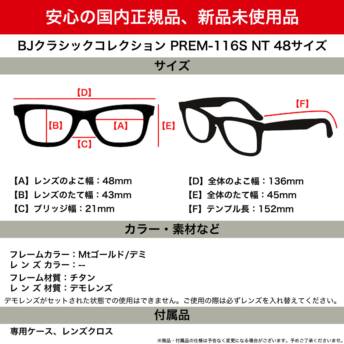 テンプルの長さ:152mm